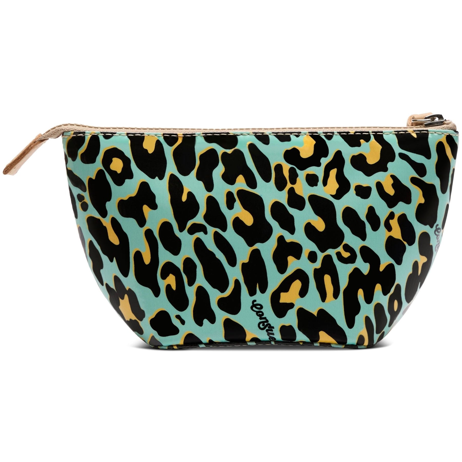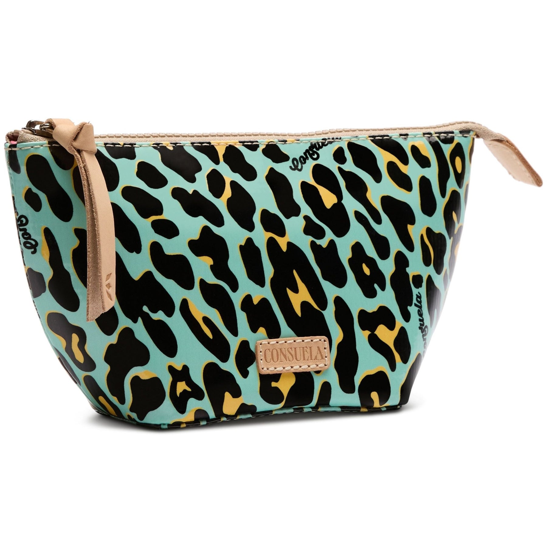 - Diego natural leather zipper pull and logo accent