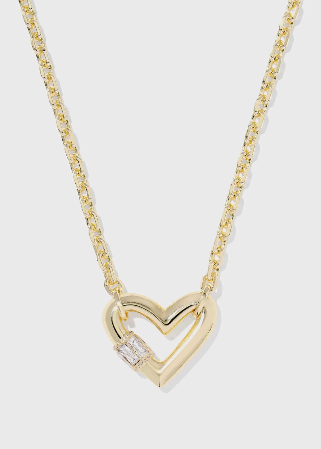 Add a spark of charm (and a touch of edge) to your necklace stack with the Emery Heart Short Pendant Necklace. This bold yet feminine piece features a heart-shaped pendant inspired by Kendra Scott’s beloved Ari design, elevated with dazzling baguette-cut stones for a modern, light-catching finish. Available in silver or gold, it’s the perfect blend of sweet and statement that complements any look.