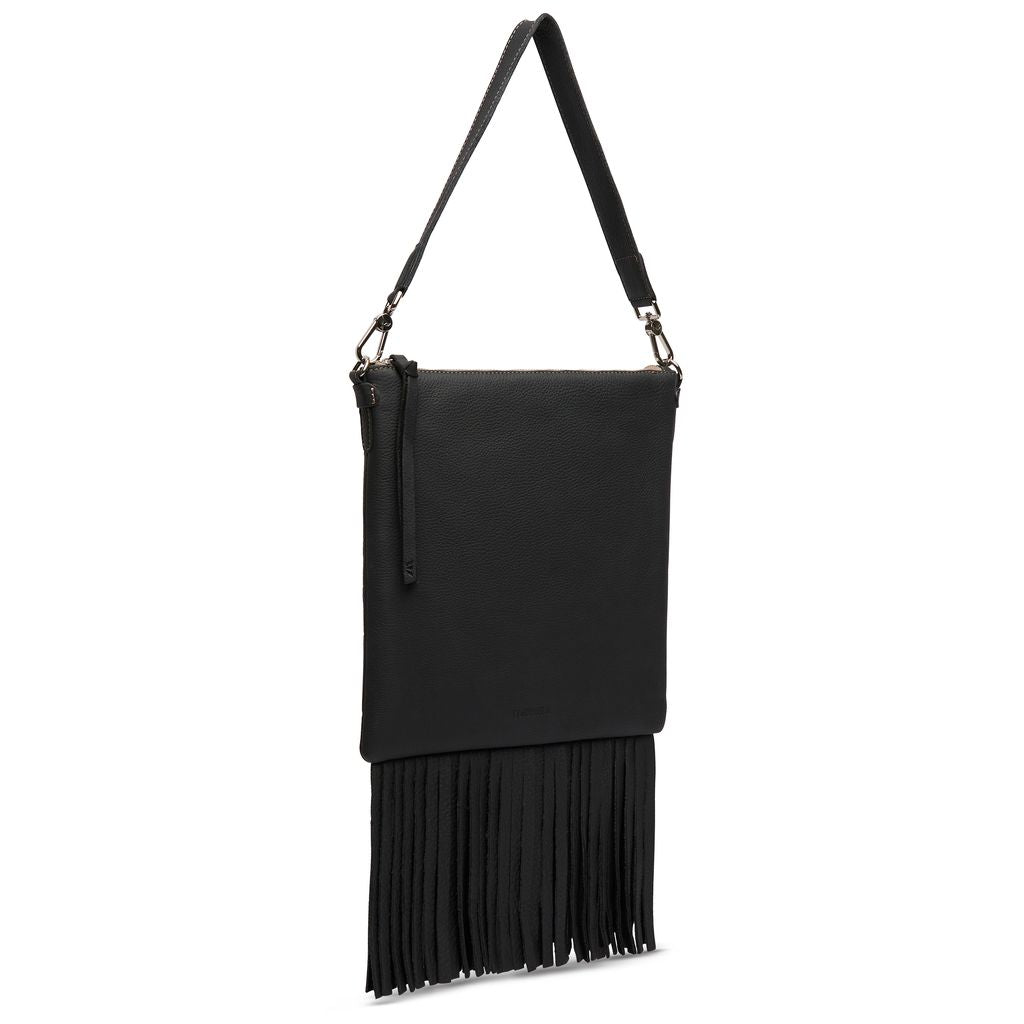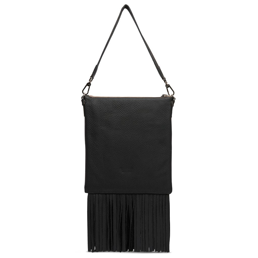 Double the fringe, double the fun. The Evie Explorer takes Consuela’s western-inspired edge to the next level with rich black leather, long fringe, and versatile straps. Designed to move with you, this bag balances everyday function with just the right amount of wild.
