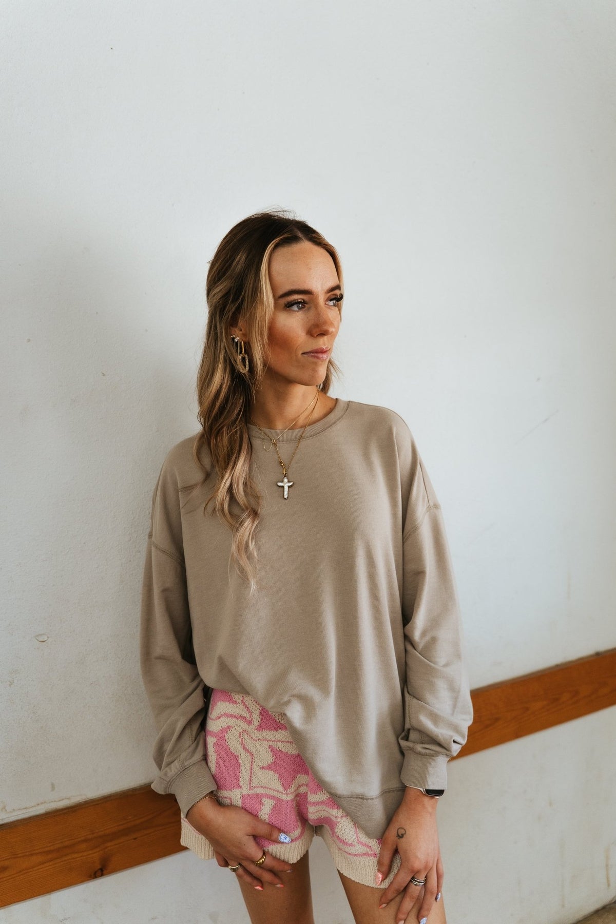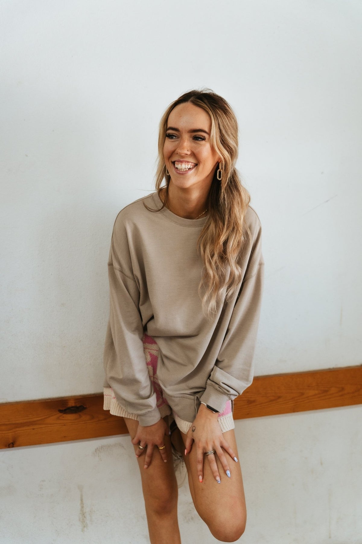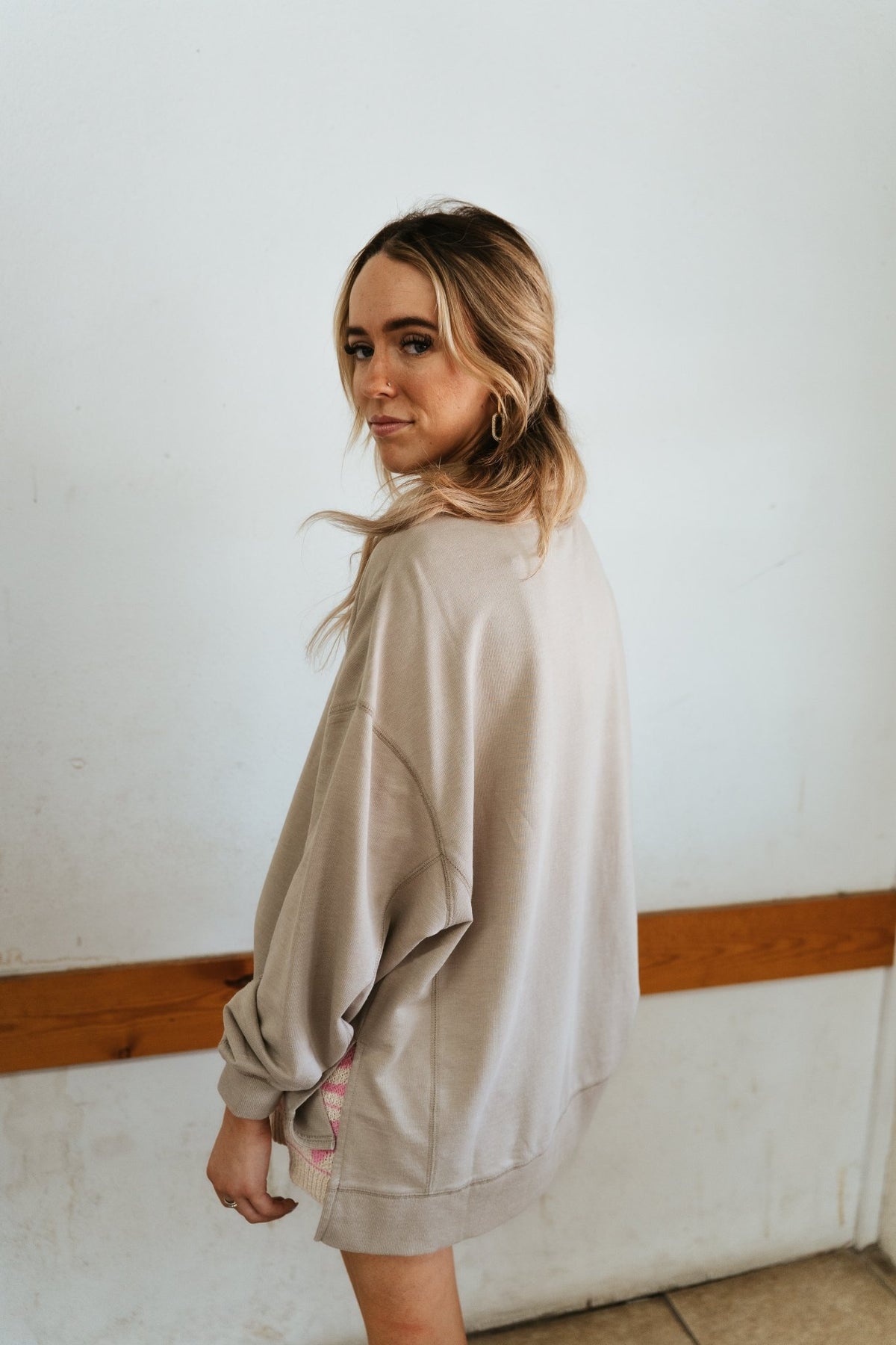 Laid-back comfort meets everyday style with this oversized sweatshirt. Soft and lightweight, it’s the perfect throw-on piece for lounging, travel days, or layering with your favorite bottoms.