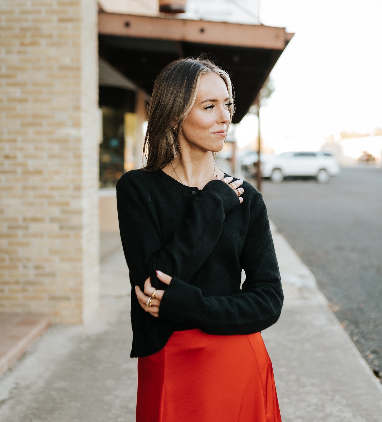 The Medina Cardigan is your go-to layer for effortless style and cozy comfort. Its soft knit, classic silhouette, and easy button-front design make it a timeless piece you’ll reach for again and again — perfect for dressing up, layering over basics, or adding warmth without bulk.