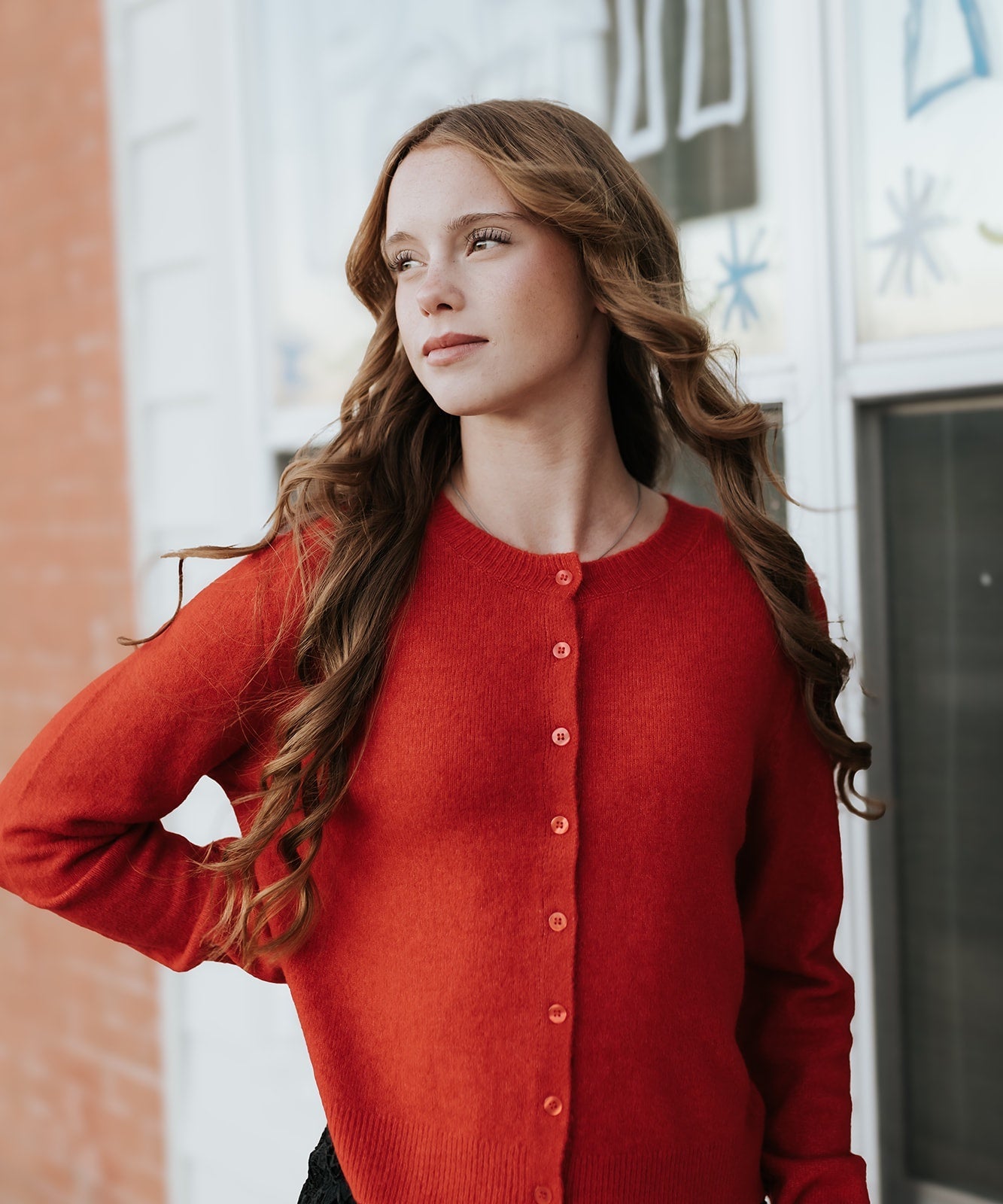 Bright, cozy, and holiday-ready — the Medina Cardigan in Festive Red brings a pop of color and warmth to any outfit. Its soft knit and classic button-front design make it a versatile layer you’ll reach for again and again.