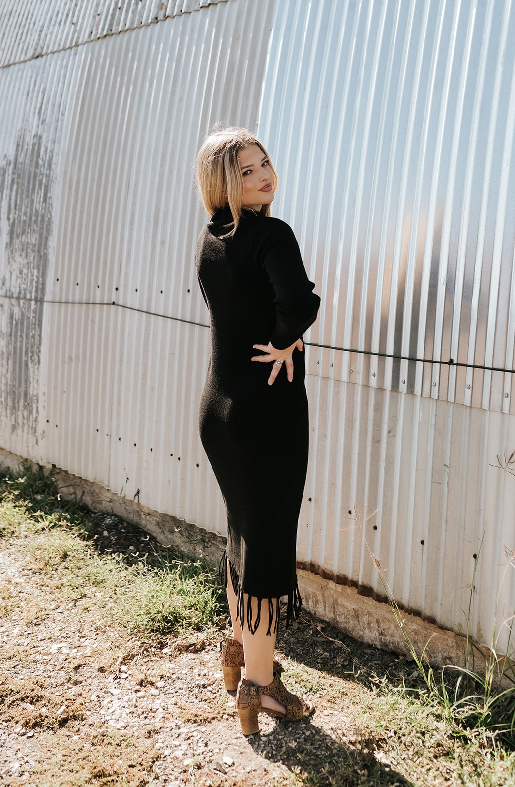 A sleek, cozy, and effortlessly chic option for the season — the Alicia Sweater Dress is made for holiday events, date nights, or evenings when you want to look put-together with minimal effort. The soft knit fabric hugs in all the right places while the fringe hem adds that fun, eye-catching detail Ariat always gets just right.