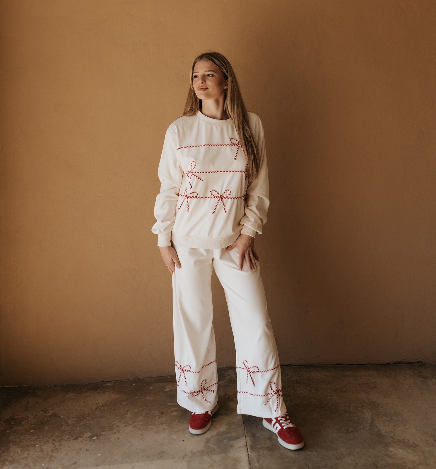 Cream Twist Bow Cord Detail Sweatshirt – IKT801105-01
