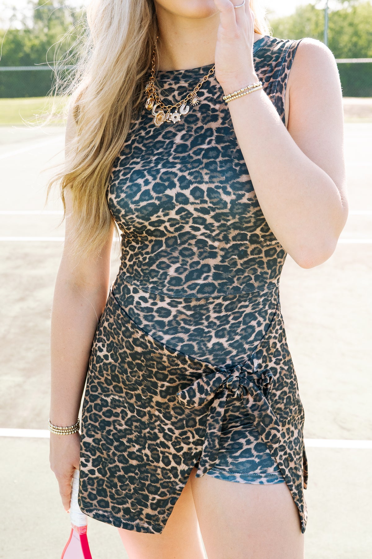 Game on, glam on. This sassy leopard number serves confidence with every step. A sleek body-hugging fit and tie-front detail make it perfect for pickleball, parties—or both.