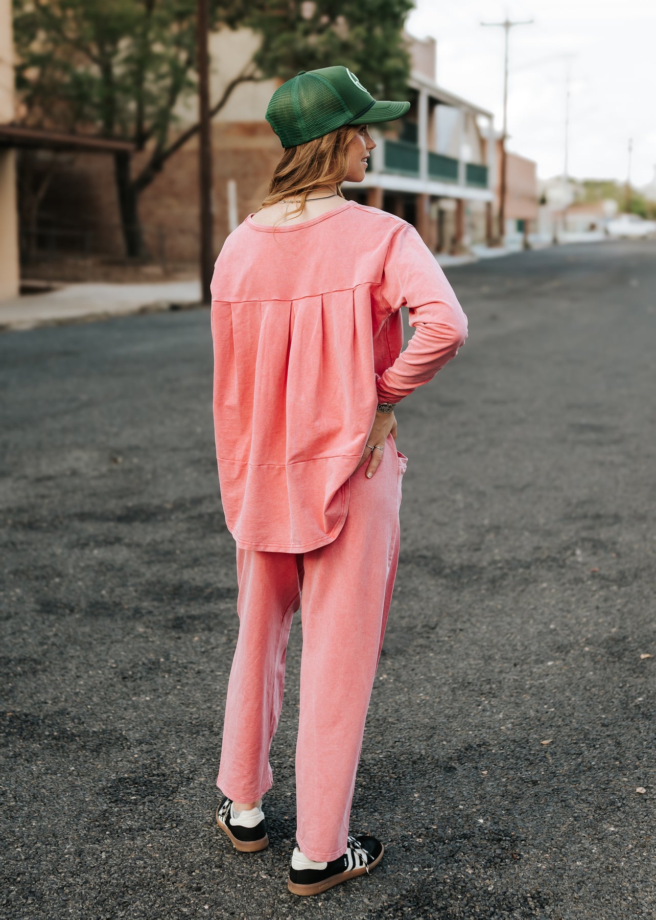 Bright, bold, and effortlessly comfy — this washed cotton set is your new go-to for laid-back days that still look put-together. The relaxed silhouette and lived-in finish give it that perfect casual feel while the pleat details add a touch of polish.