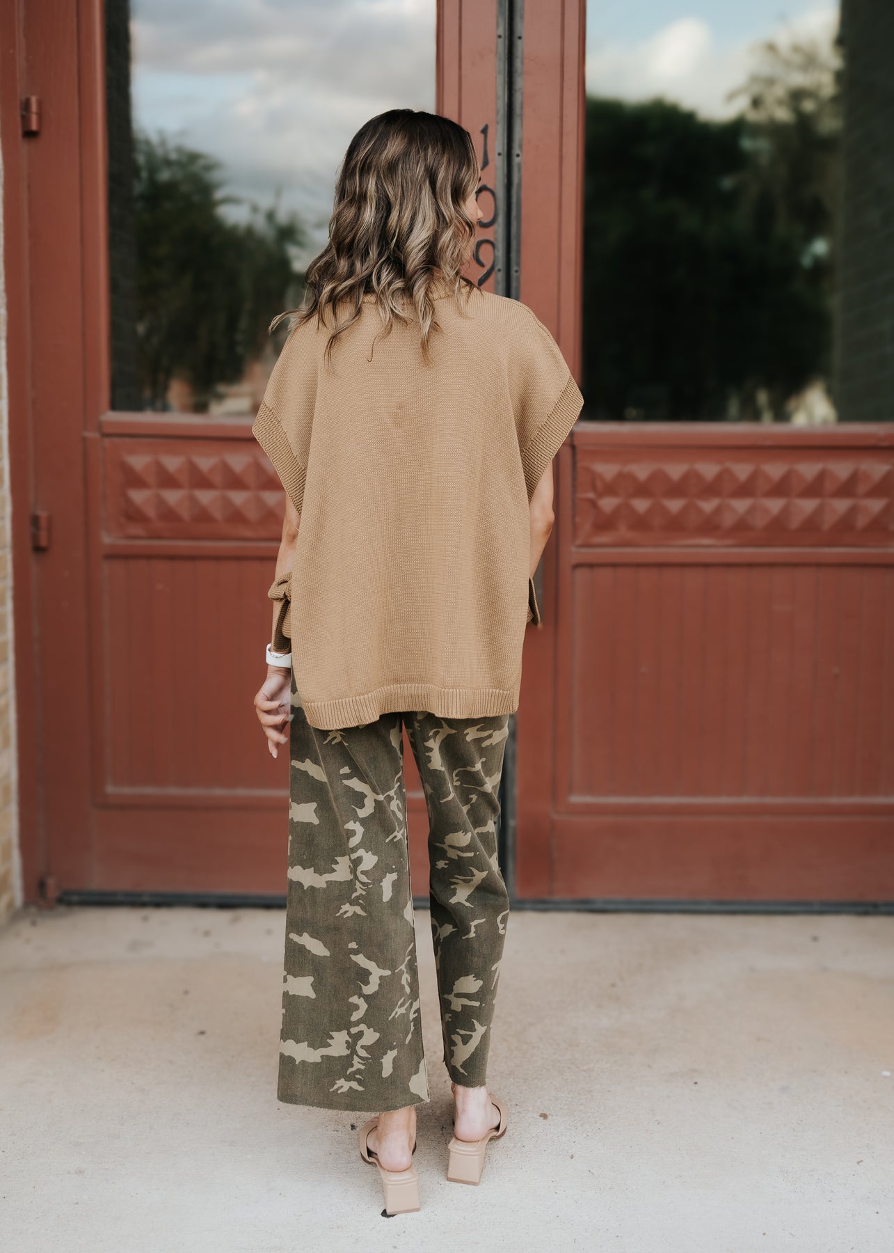 Layer over a crisp white blouse or fitted turtleneck with our wide-leg camo pants or jeans for an effortlessly polished fall look.
