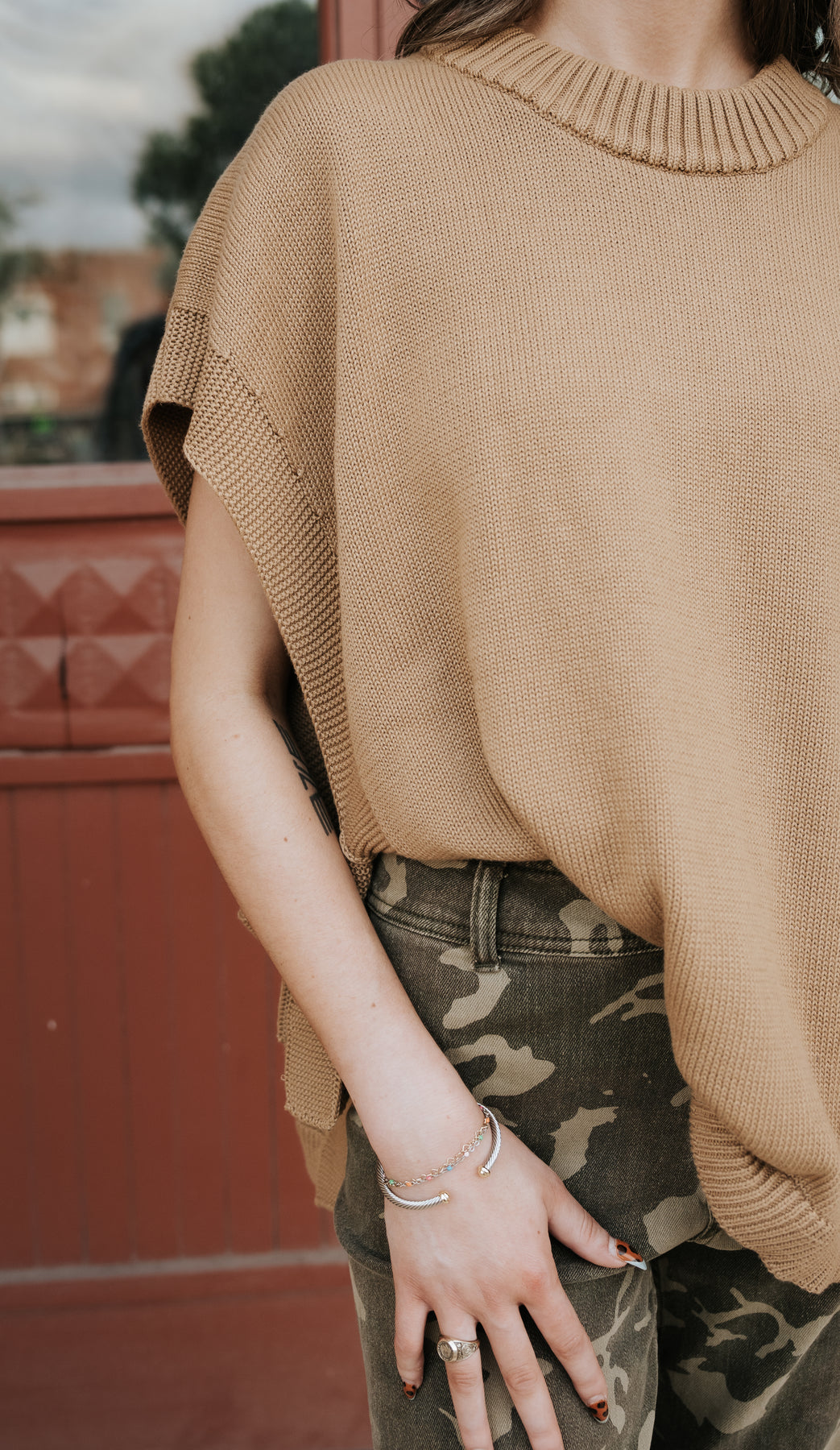 The Tye Sweater Vest brings effortless layering to your wardrobe with a relaxed, oversized silhouette and soft knit texture. Featuring open sides with tie details, this versatile piece adds a touch of cozy sophistication to any outfit.