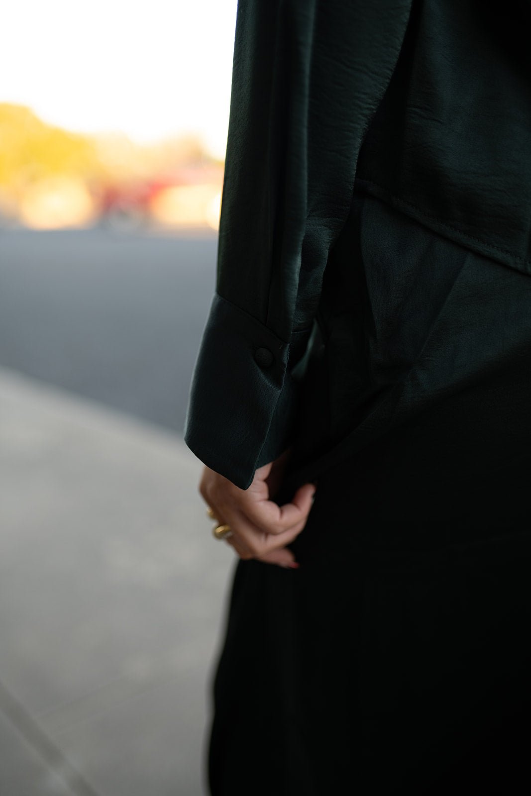 Create a monochromatic moment by styling with the Ana Satin Top — add gold accessories for a polished, festive feel.
