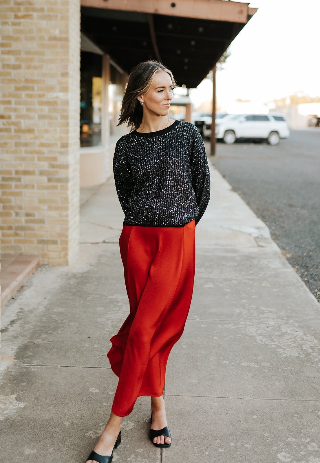 Pair it with the Medina Cardigan for a chic contrast in texture — add black heels or boots to keep the look sleek and polished.