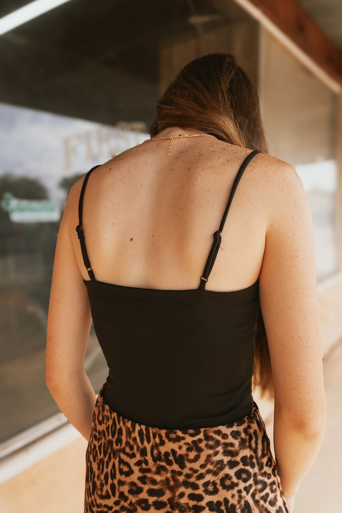 A sleek, minimalist staple you’ll reach for on repeat—this black bodysuit is designed to create a flawless, tucked-in look with all-day comfort. Perfect for layering or wearing solo, it’s the definition of versatile style.