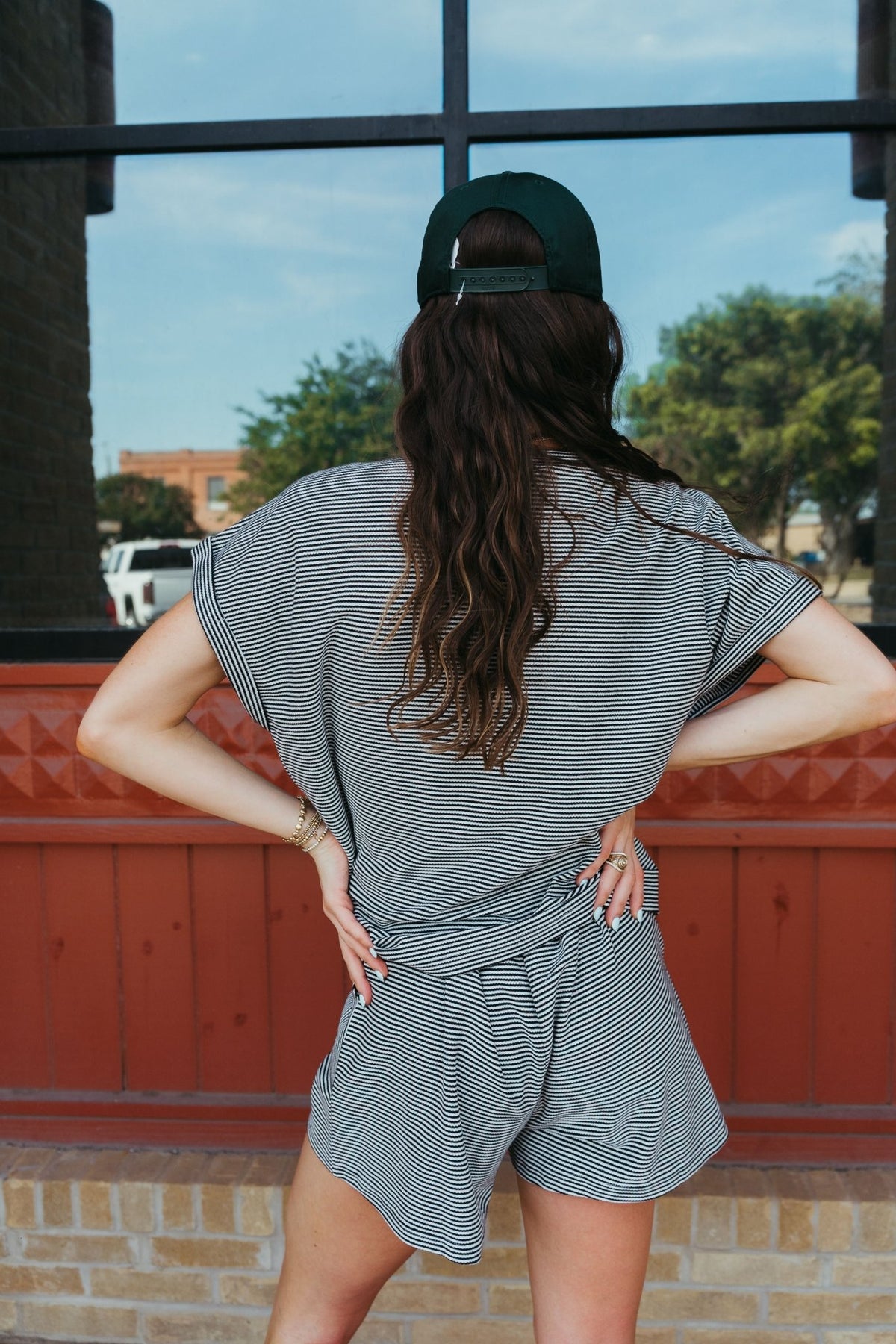 This striped French terry top and shorts set is made for lounging, errands, or laid-back weekends.