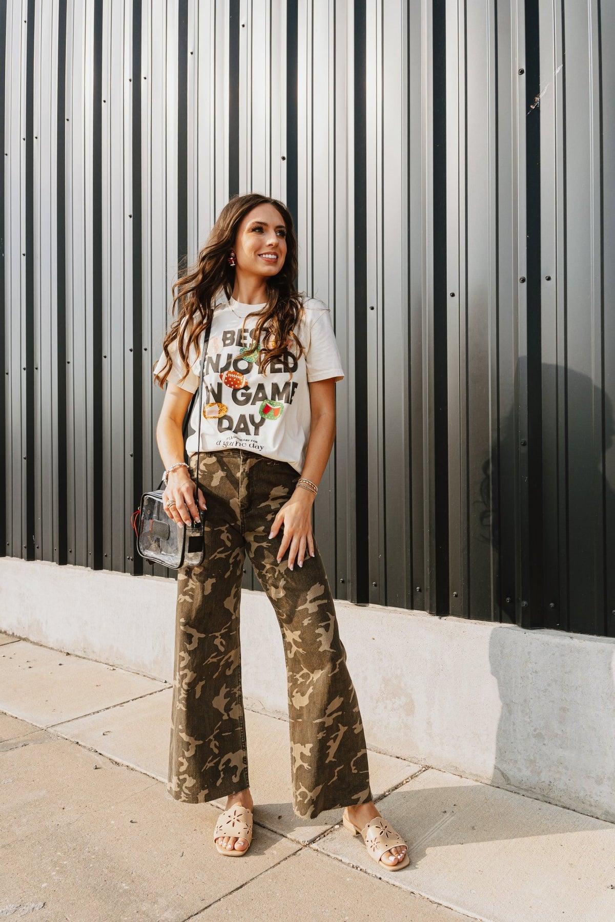 Classic camo, reimagined for everyday style! These high-rise stretch pants blend edgy and comfy with a soft, flexible fit that moves with you. Featuring a raw hem and flattering straight-leg silhouette, they’re the ultimate cool-girl staple for pairing with graphic tees or fitted tanks.