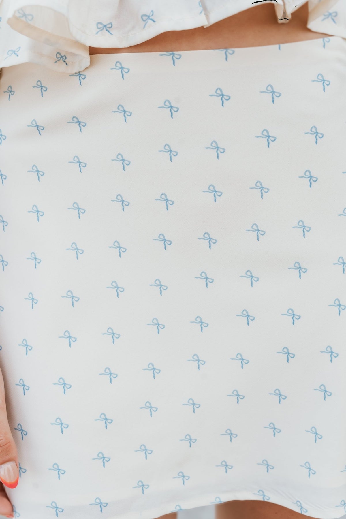 Cream Bow Print Tiered Top & Mini Skirt Set 🎀✨