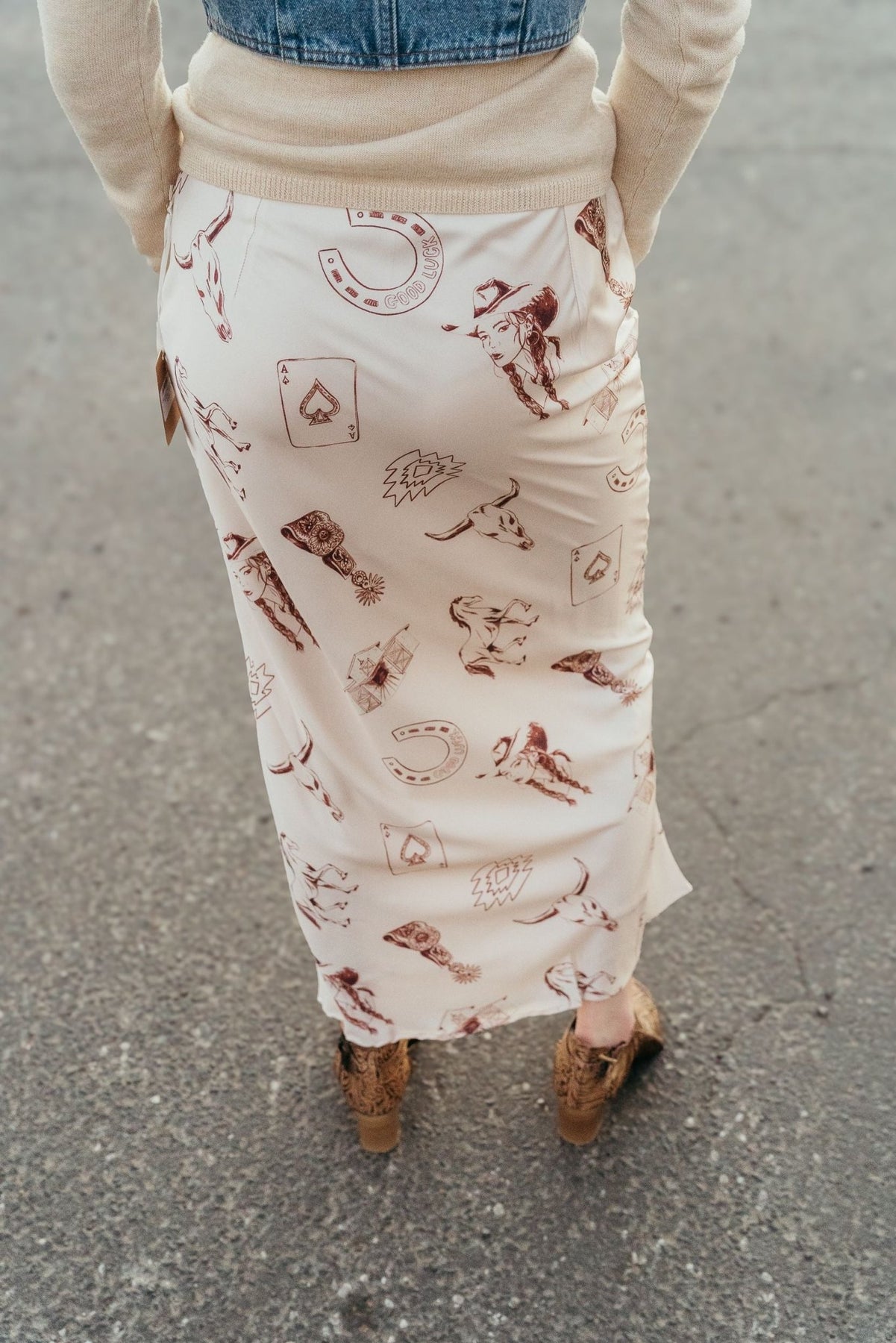 Cream Satin Cowgirl Long Skirt BRK2866-1