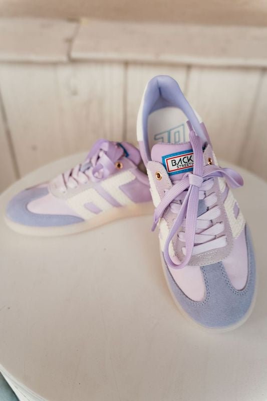 Step up your sneaker game with the Back 70 Ghost Sneaker in Dark Light Lilac—a vibrant, gradient ombre sneaker inspired by sleek Italian street style. Featuring a fusion of heritage design and modern energy, this sneaker is crafted from handcrafted leather, suede, and fabric, blending luxe textures with standout color. The 1" platform, cushioned footbed, and padded tongue bring all-day comfort, while the braided laces and stitched details elevate your look.