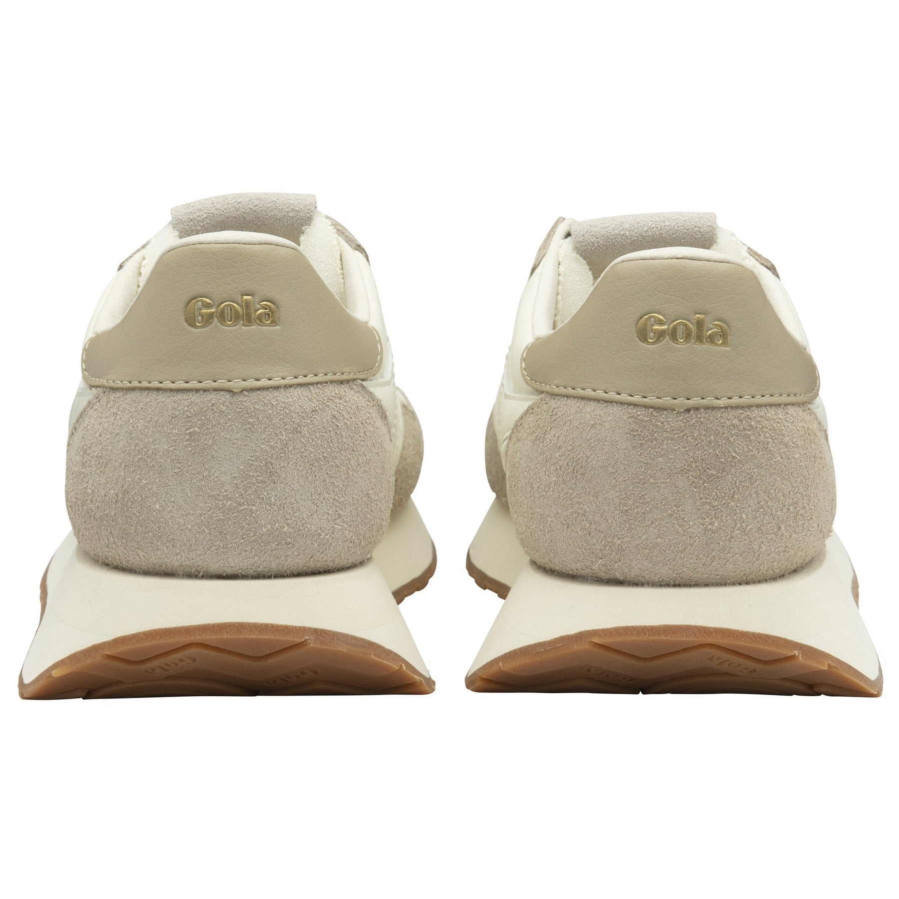Arizona in off white with bone is an effortlessly chic and versatile women’s sneaker from Gola Classics. This women's jogger inspired sneaker combines a mix of vintage effect nylon with suede panelling and features an oversized sole. A super comfy in-sock has been incorporated for enhanced comfort meaning these beauties look great and feel great on. Arizona pairs perfectly with a smart casual look.