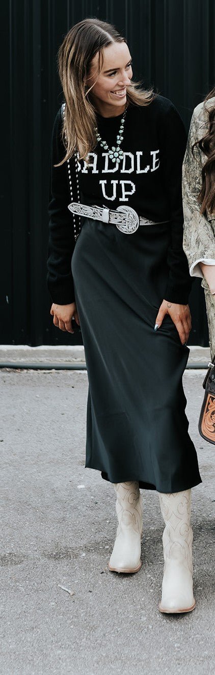 Pair it with our Wrangler Saddle Up Sweater and boots for a Western-inspired luxe look, or dress it up with heels and a statement blouse for a night out.