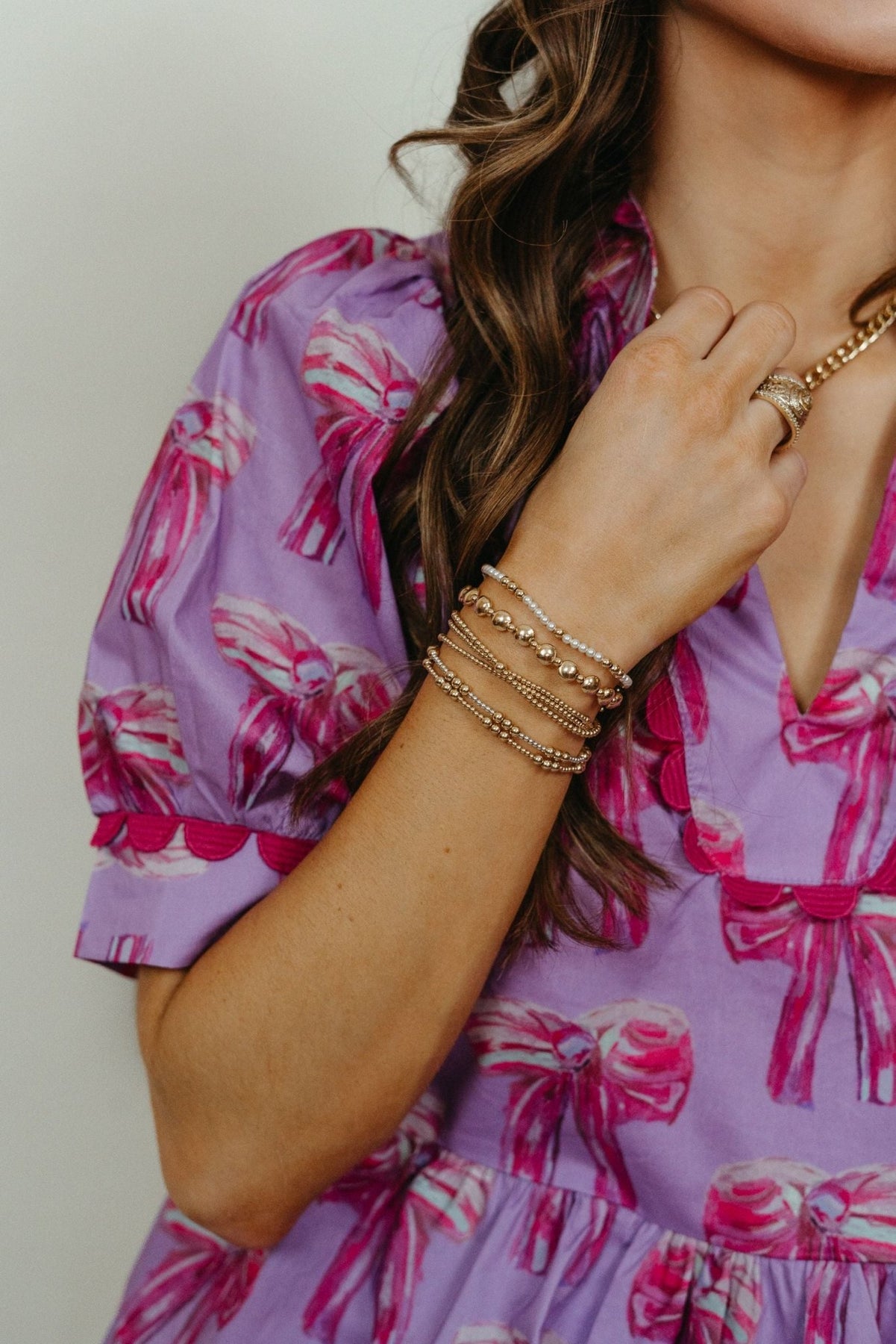 Lavender Bow Print Puff Sleeve Top w/Scallop Trim T25139