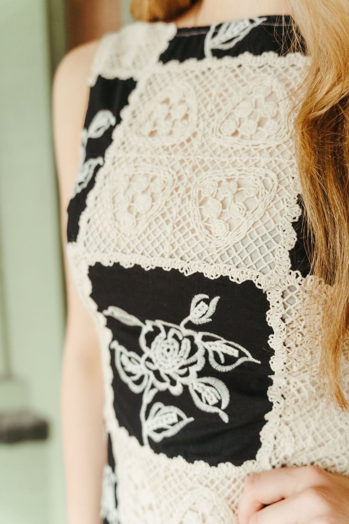 The Louisa Mini Dress is your go-to for special occasions, from weddings to evenings out. Made from 100% cotton and fully lined for comfort, this stunning black dress features macramé and embroidered detailing that adds texture and sophistication. The scoop back and hidden zipper elevate the look with just the right touch of drama.