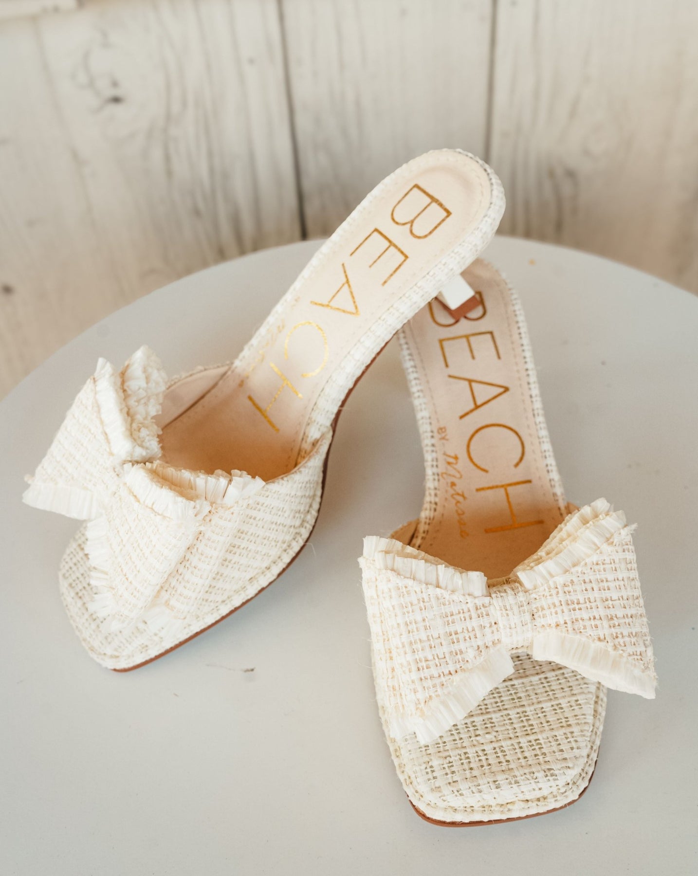 Step into timeless sophistication with the Penelope White Heel by Matisse. Designed with tweed and raffia materials, this elegant kitten heel brings a touch of textured charm to any outfit. The large, beautiful bow on the front adds a feminine, statement-making touch, making these heels perfect for elevated everyday looks or special occasions.
