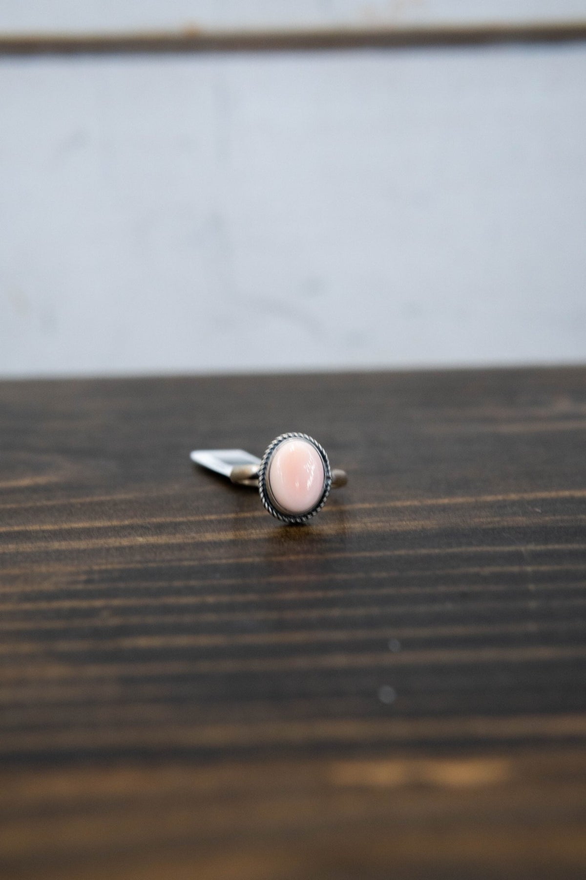 Soft, feminine, and timeless This handcrafted sterling silver ring features a dreamy pink conch stone with a smooth oval shape and rope-edge detailing. Each stone is naturally one-of-a-kind, making every ring uniquely yours.