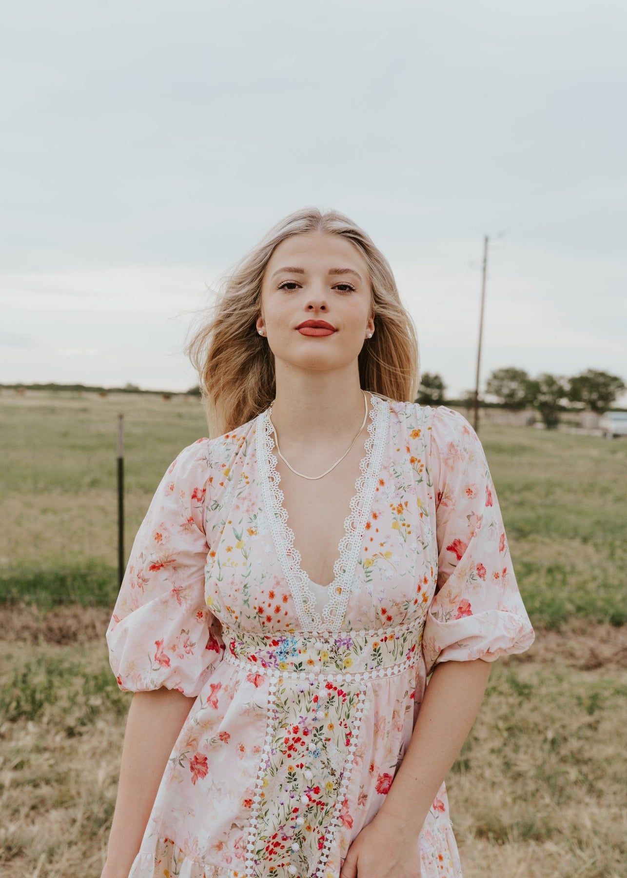 This dress is pure main character energy. With its soft floral print, puff sleeves, and scalloped lace trim, it’s perfect for sunny strolls, rodeo weekends, or saying “yes” to the cutest outfit in your closet.