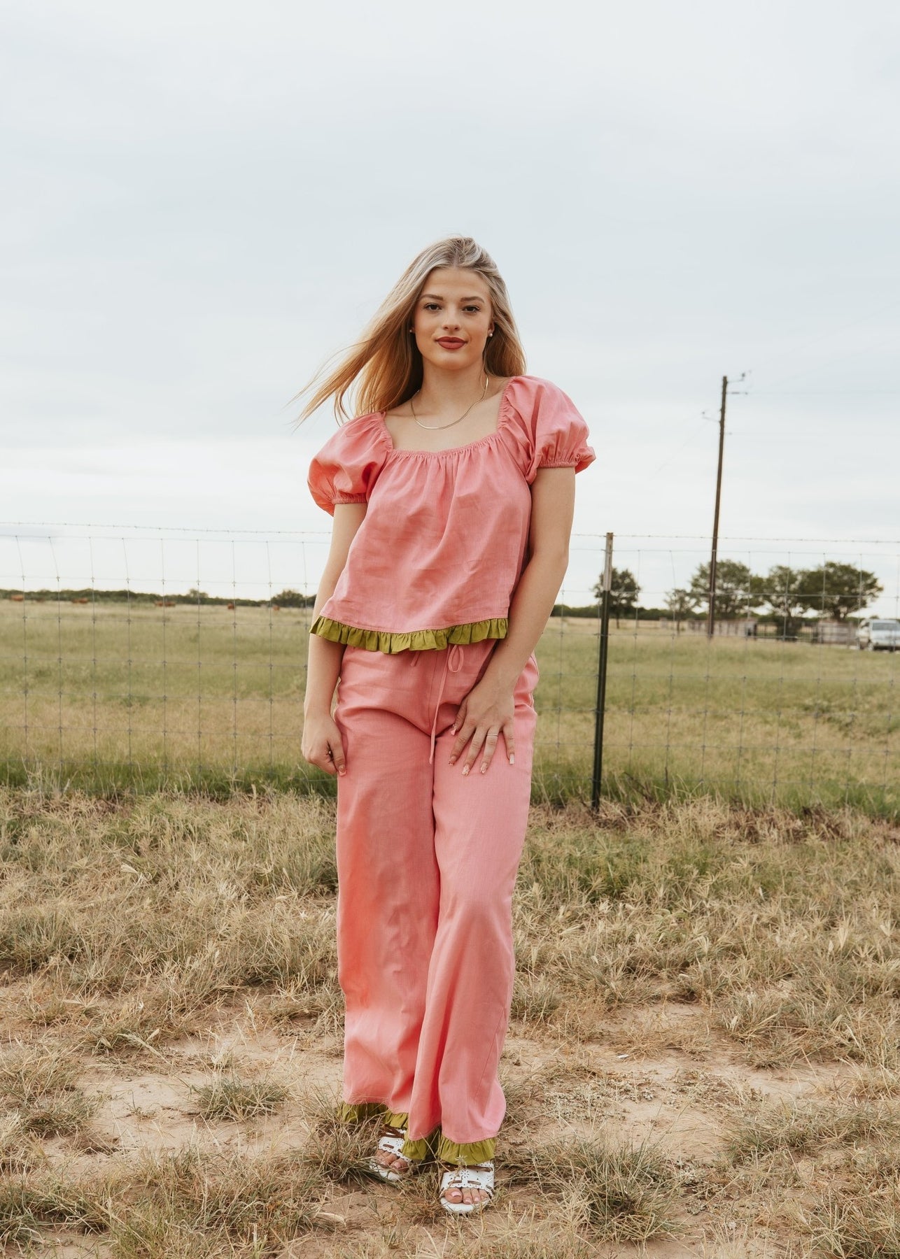 Pink Ruffle Hem Pants – Comfy, Cute & Made to Match 💗💚