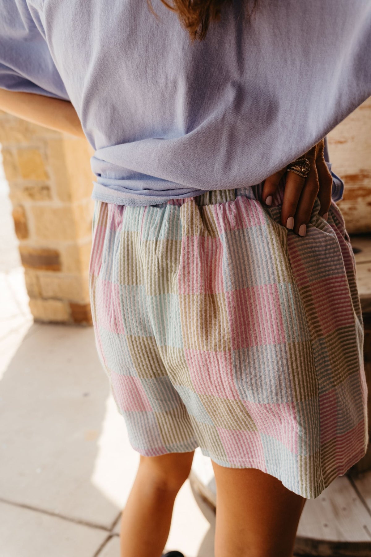 Add a little playful prep to your summer lineup ☀️ These pastel pink striped and checker seersucker boxer shorts are cute, comfy, and effortlessly easy to style. With an elastic waistband and side pockets, they're made for lounging, errands, or mixing and matching with your favorite tanks and tees.