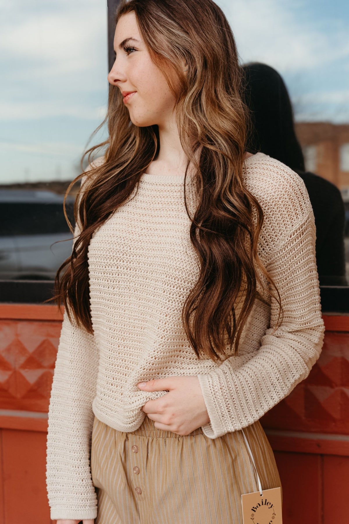 The Riviera Crochet Top by Z Supply in Natural is your go-to for adding a touch of boho charm to any outfit. Made from 100% cotton crochet knit, this relaxed, midweight top features a flattering boat neckline, long sleeves, and a cropped length that’s perfect for layering over tanks, bralettes, or dresses.