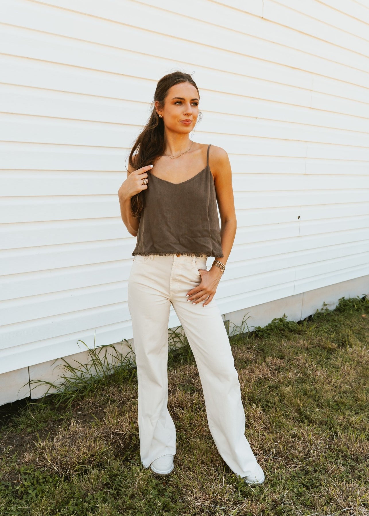 An effortless summer staple with a breezy fit and earthy tone, the Sabel Tank is your go-to for warm days and easy layering.