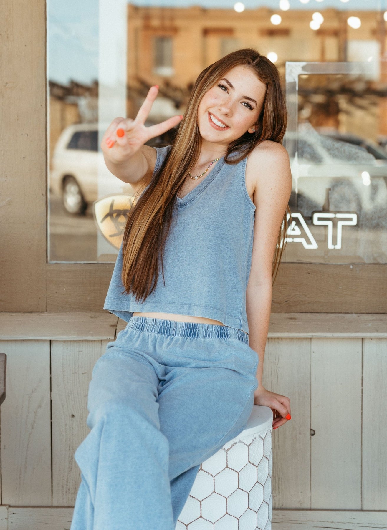 A new take on a favorite—meet the Sloane V-Neck Top in a soft mineral wash finish. Made from breathable 100% cotton jersey, this relaxed-fit tank features a flattering v-neckline and timeless silhouette that's perfect for everyday wear. Lightweight yet substantial, it’s ideal on its own or paired with the matching Jersey Denim Pant for a cool, coordinated vibe.