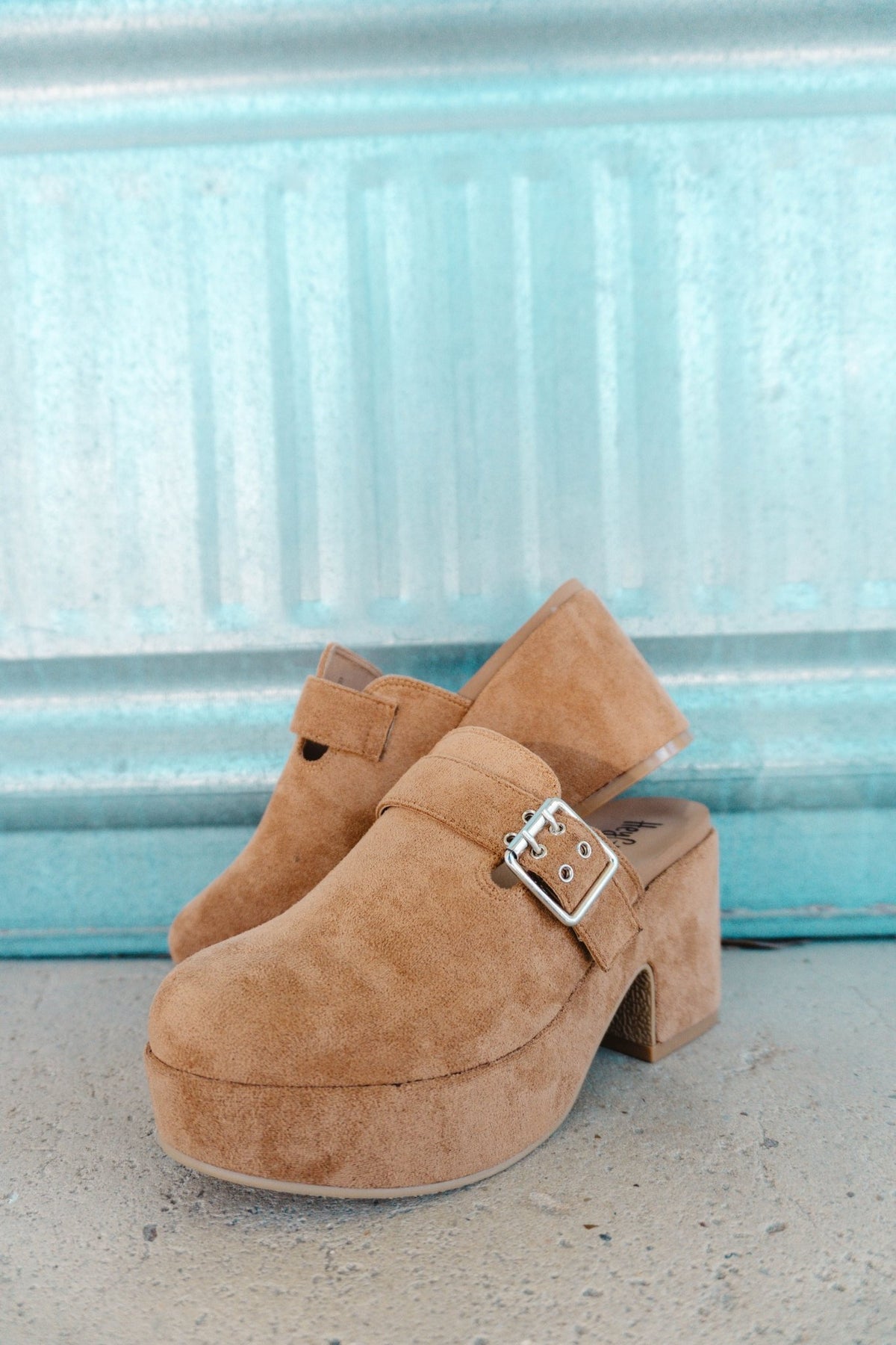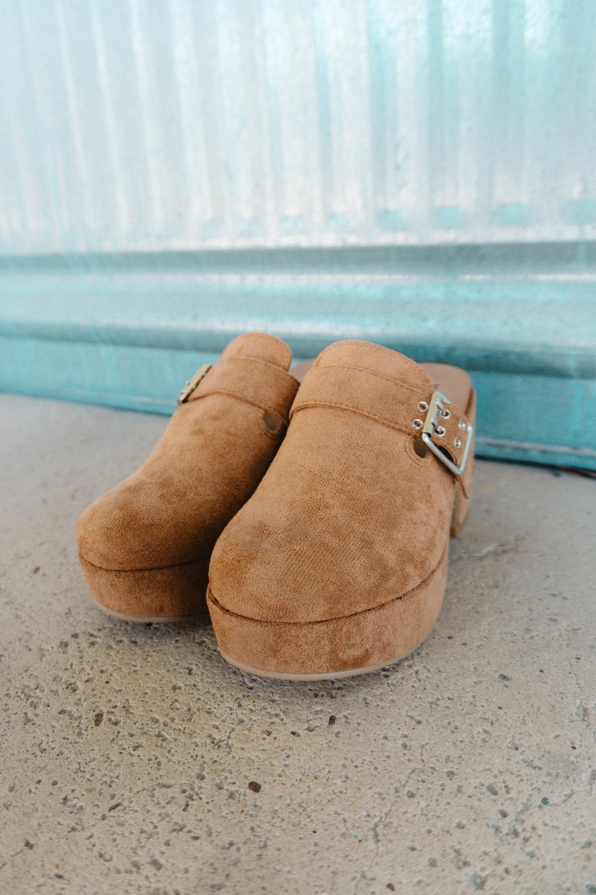 Corkys Tell Me More Wedge – Tobacco Suede Platform Clog