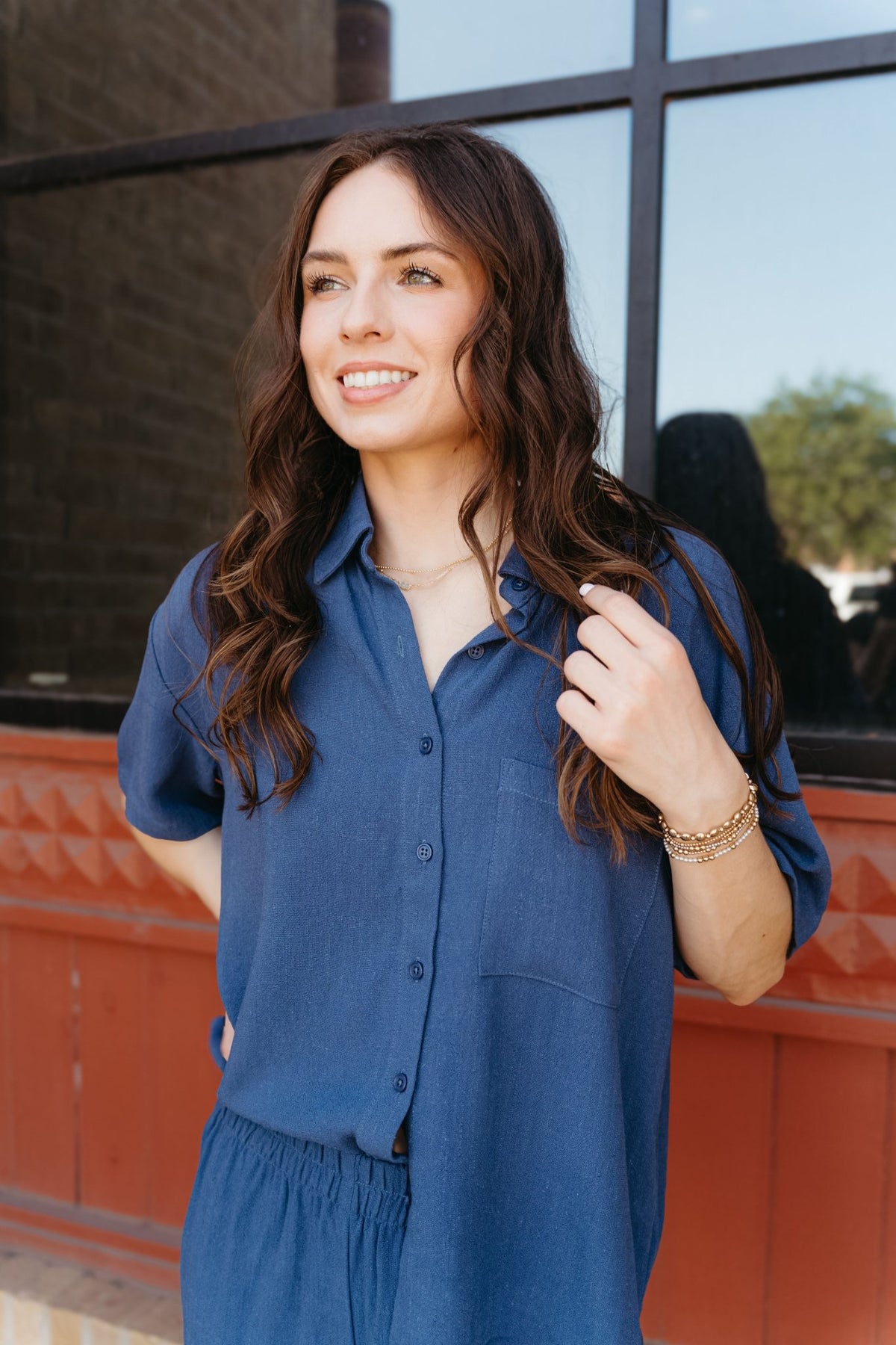 Easy, breezy, and effortlessly cool The Tinsley Button-Up in Yacht Blue is your warm-weather staple. Designed with a relaxed fit and crafted from a soft rayon-linen blend, this top features short sleeves, an oversized chest pocket, and side slits for laid-back vibes. Whether layered or worn solo, it’s the kind of piece that elevates any casual look.
