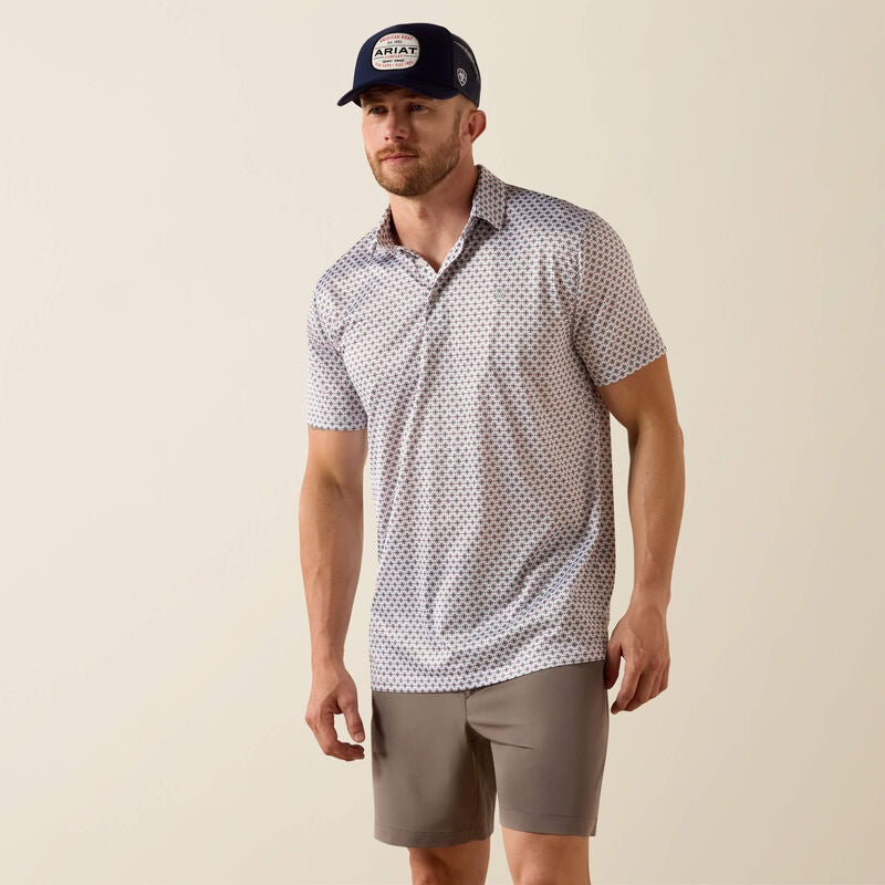10076071 MNS All Over Print Polo WHITE MULTI MEDALLION PRINT SHORT SLEEVE
