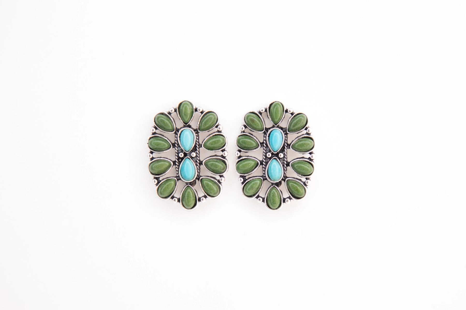 Silver Oval Cluster Post Earrings – Turquoise & Green (Women’s)