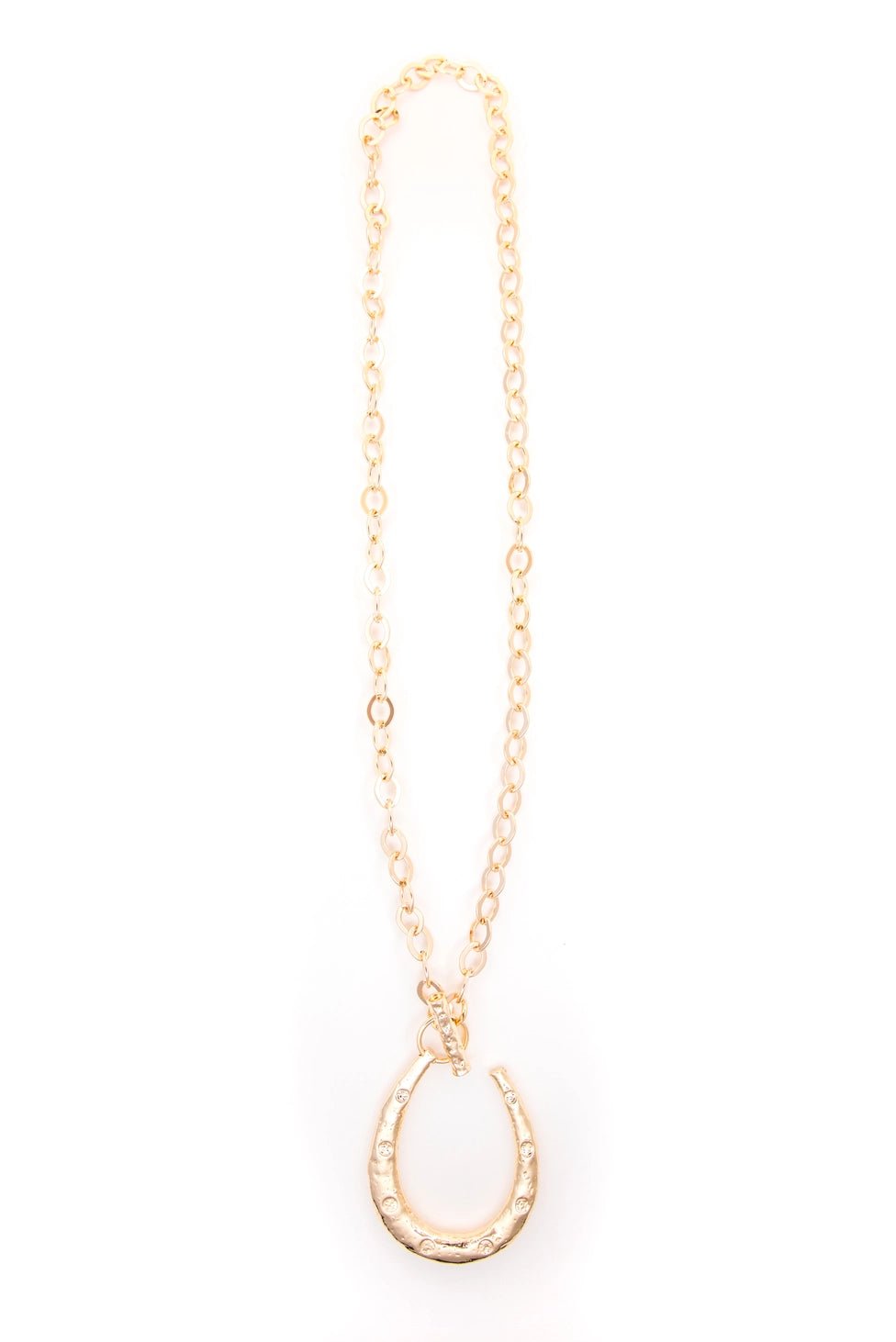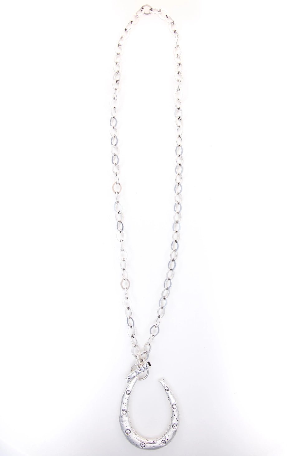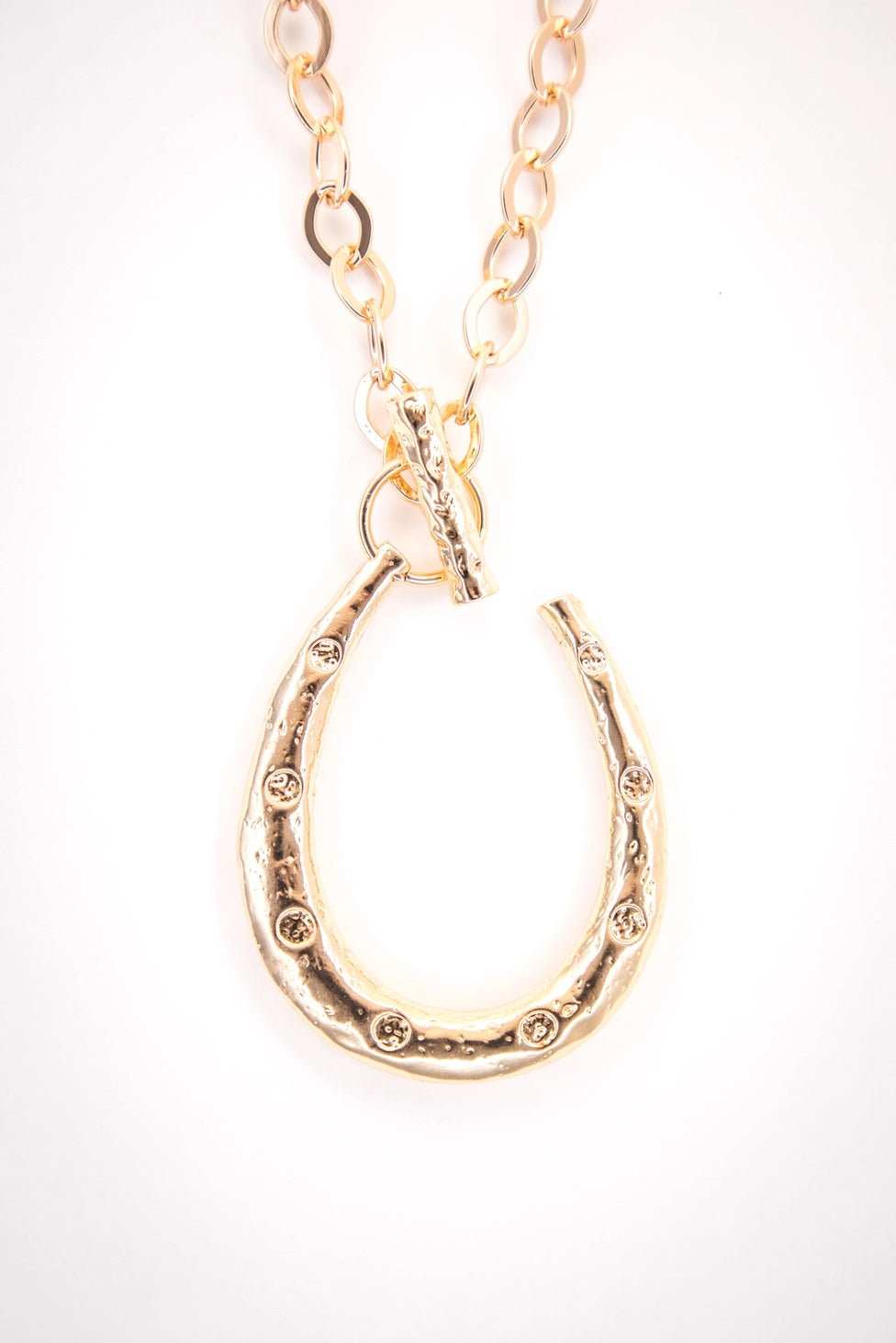 A bold Western-inspired statement piece in two easy-to-style finishes. This long chain necklace features a large horseshoe pendant and a toggle closure, making it perfect worn alone or layered with your everyday favorites.