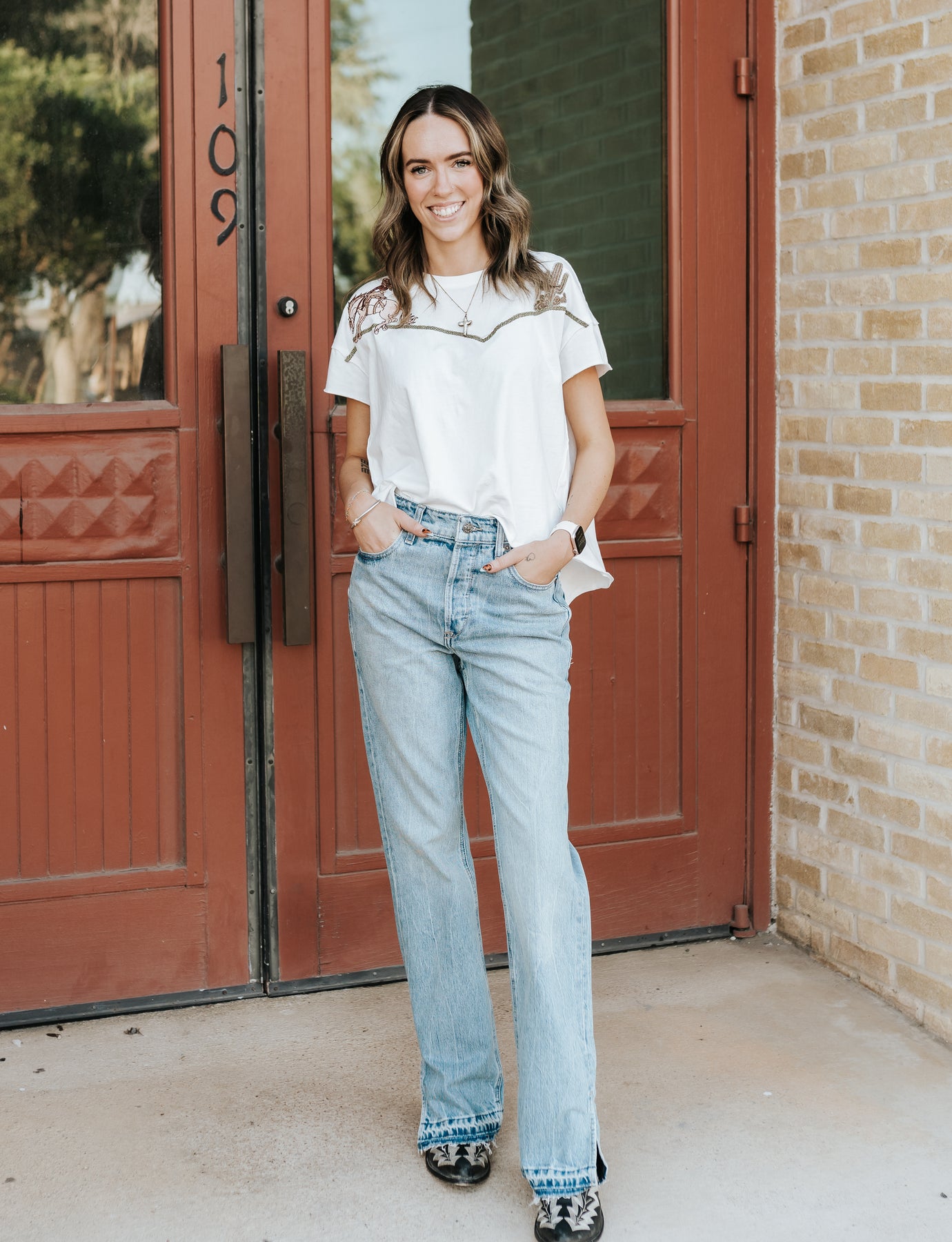Pair with an embroidered tee and boots for a true cowgirl look, or add a tucked button-down for a polished, classic western outfit.
