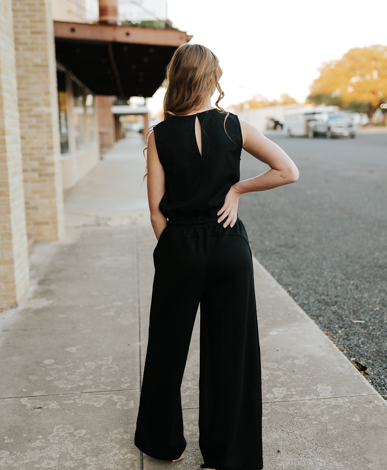 The perfect blend of comfy + chic, the Black Atlas Jumpsuit is your new go-to for effortless style. With its soft drapey fabric, relaxed wide-leg fit, and flattering cinched waist, this one-and-done outfit makes getting dressed so easy. Brunch, travel days, errands, or a casual night out—she does it all.