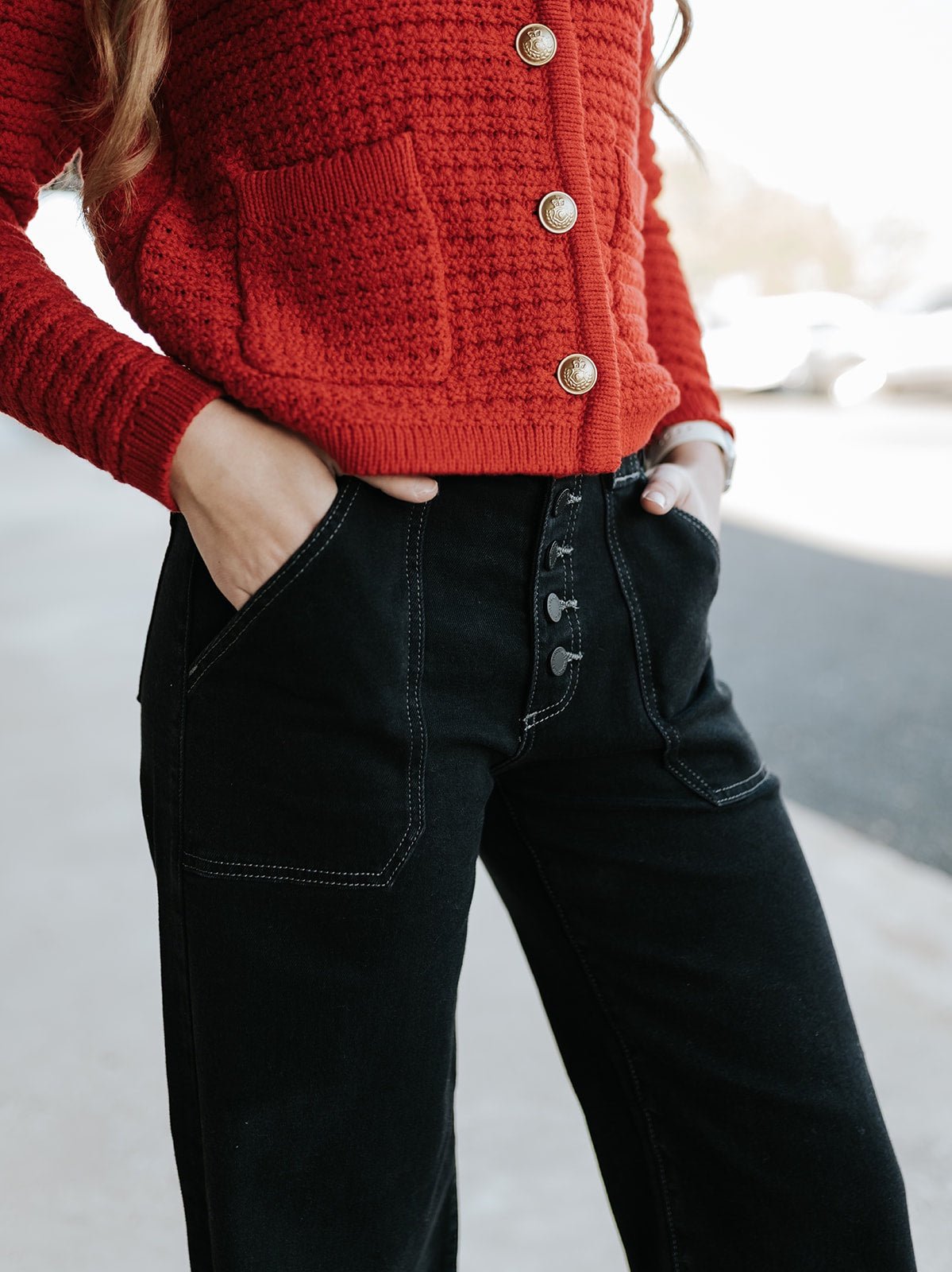 A flattering fit meets everyday comfort — the Black Button Down Slim Wide Jean is your new go-to denim. With a button-front closure, slimming silhouette, and wide-leg shape, these jeans strike the perfect balance of modern and timeless.