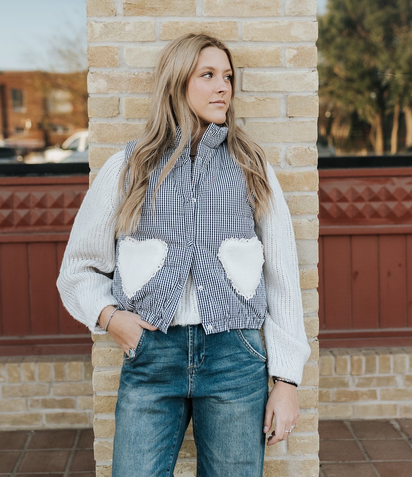 Black/White Gingham Oversized Puffer Vest with Heart Shaped Pocket PJ6172 - Southern Soule Designs