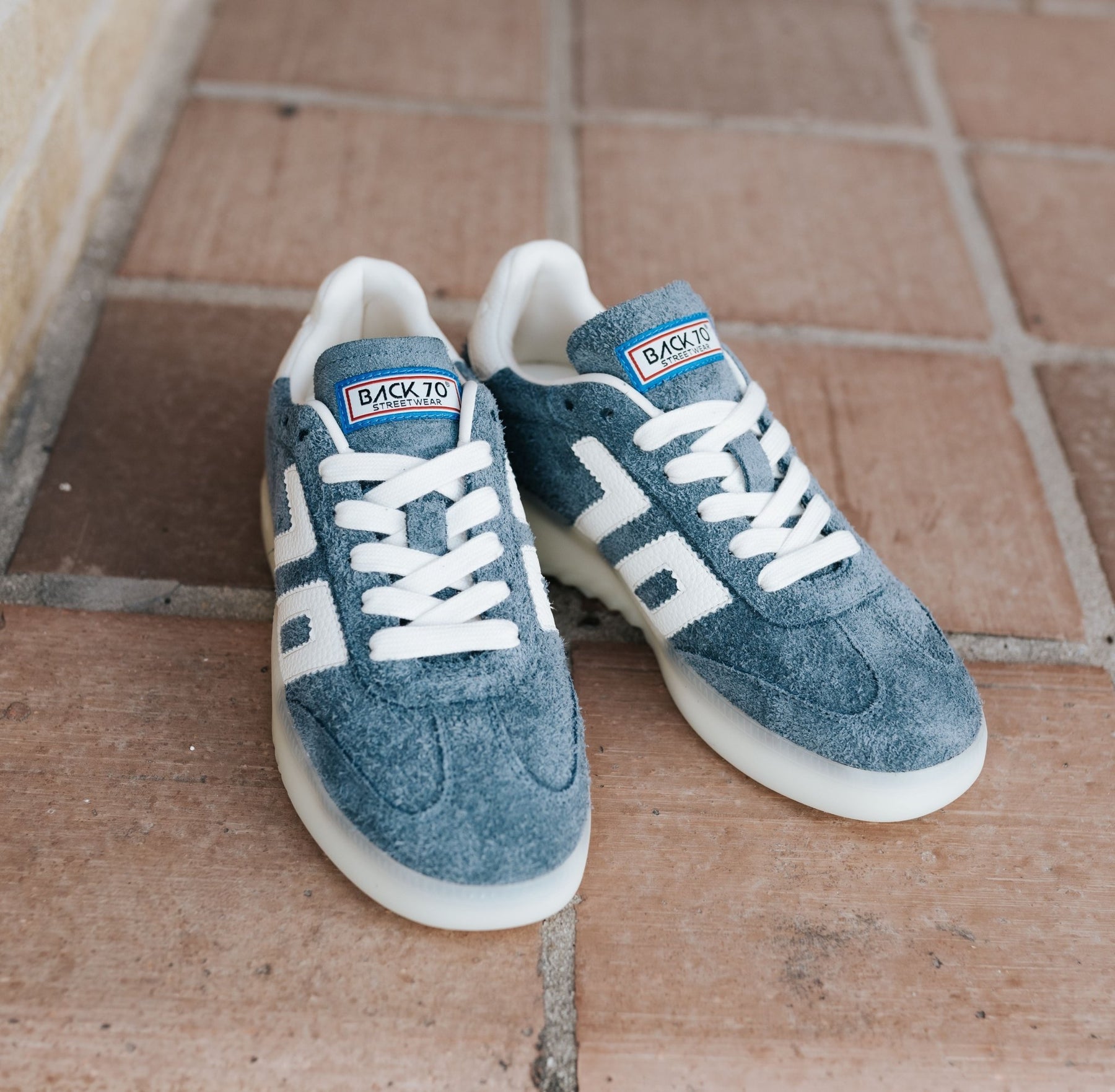 Step up your street style with the Boston LS Blue Milk Sneaker. Handcrafted in small batches, this retro-inspired pair blends Back 70’s signature vintage aesthetic with classic soccer-sneaker details. The soft suede upper, bold “70” emblem, and gummy rubber sole come together to create a sneaker that’s as comfortable as it is iconic. Lightweight, cushioned, and easy to wear—perfect for everyday outfits that need a little nostalgic edge.