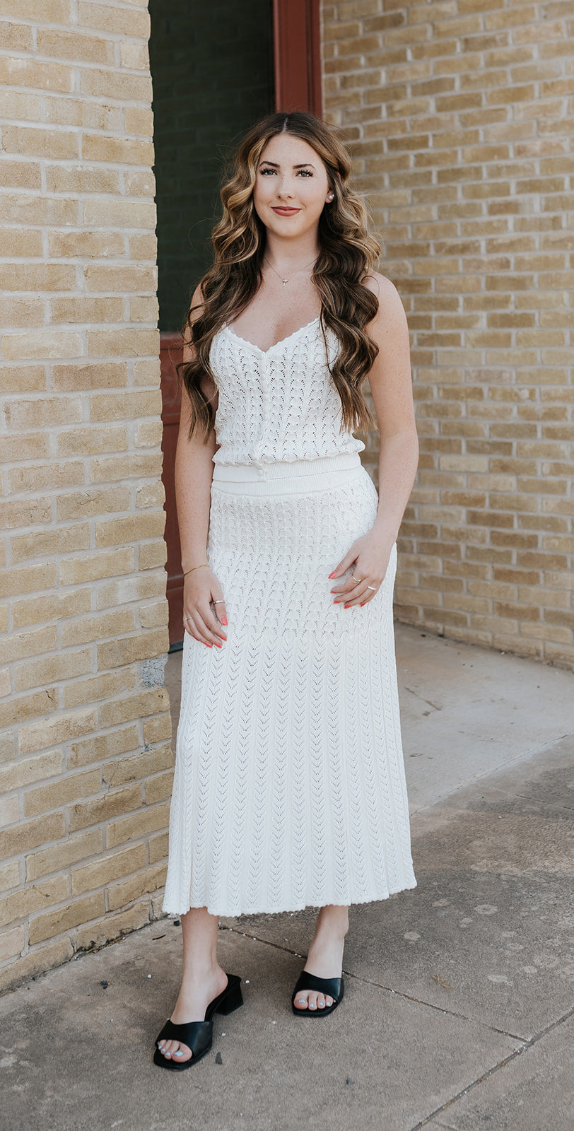 A lightweight sweater tank that gives you a polished look without sacrificing comfort. The soft knit texture and flattering fitted shape make it easy to style for warm days when you still want to look put together.