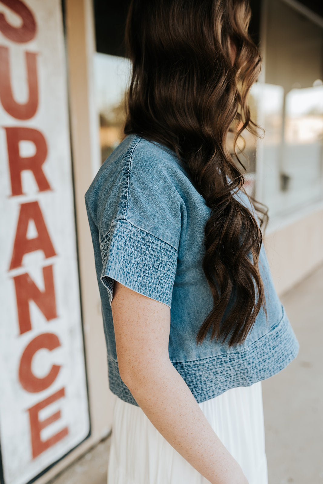 An easy, modern take on classic denim. This cropped boxy top features soft cotton fabric with subtle texture details for a laid-back look that still feels styled.