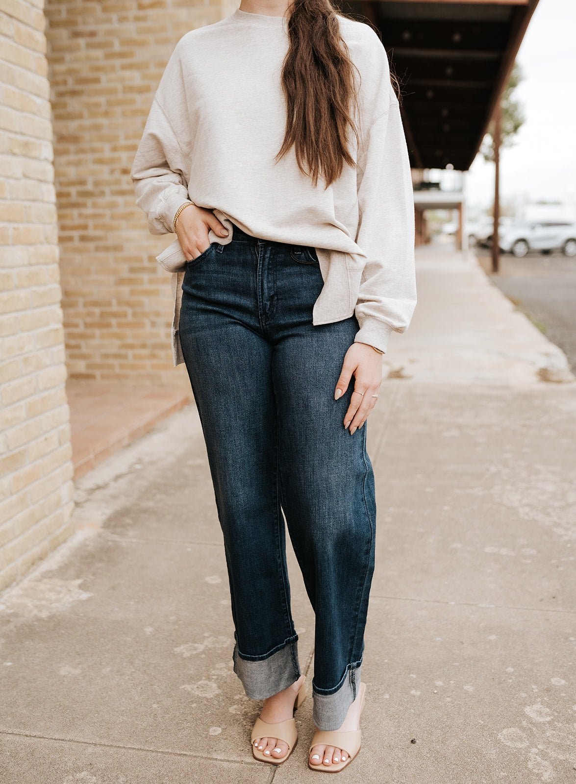 A statement wide-leg jean with a standout cuffed hem. Structured, stylish, and easy to dress up or down — the perfect denim refresh.