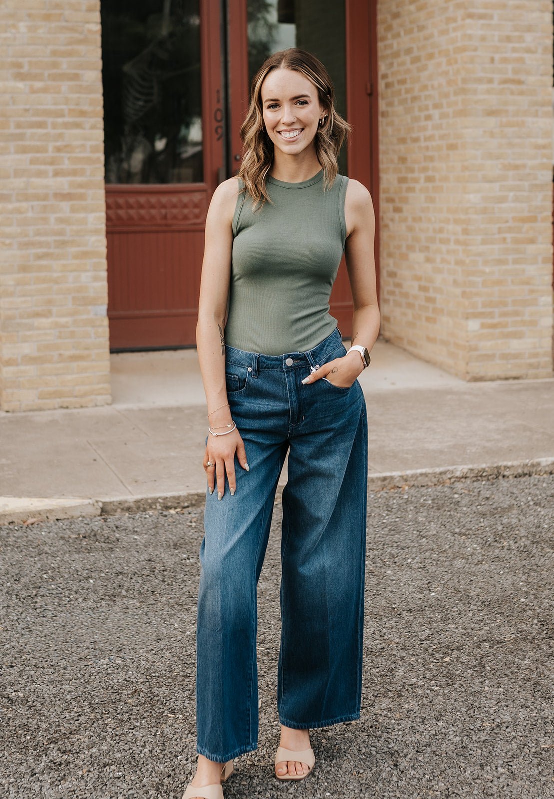 Pair it with high-rise denim and gold hoops for a clean, elevated look — or layer under a blazer for easy office-to-evening style.
