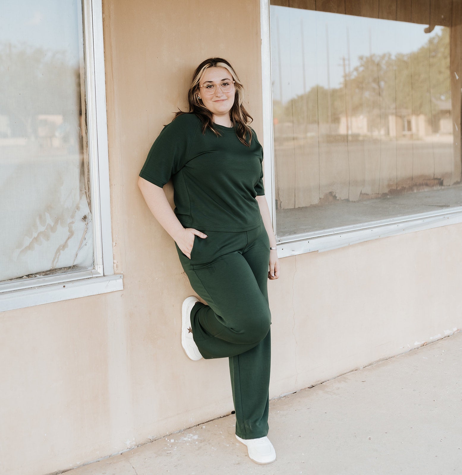 Meet your new everyday go-to. The Deep Forest Laguna Raglan Tee brings that soft, relaxed drape we all love with a rich forest-green shade that feels elevated but effortless. Lightweight, stretchy, and so easy to style — this tee is made for coffee runs, workdays, and cozy weekends.