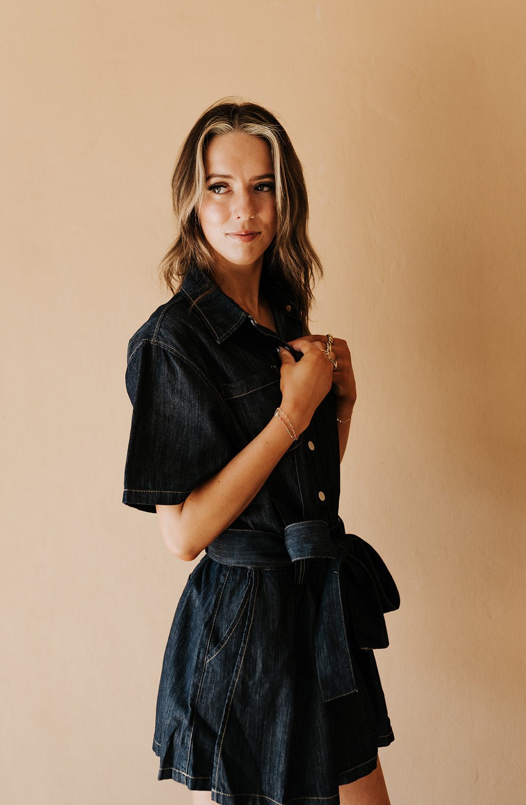 Effortlessly cool and endlessly flattering — this denim romper is your new go-to for easy, put-together style. The pleated shorts, belted waist, and classic button-down top create a timeless look that moves from daytime errands to dinner plans without missing a beat.