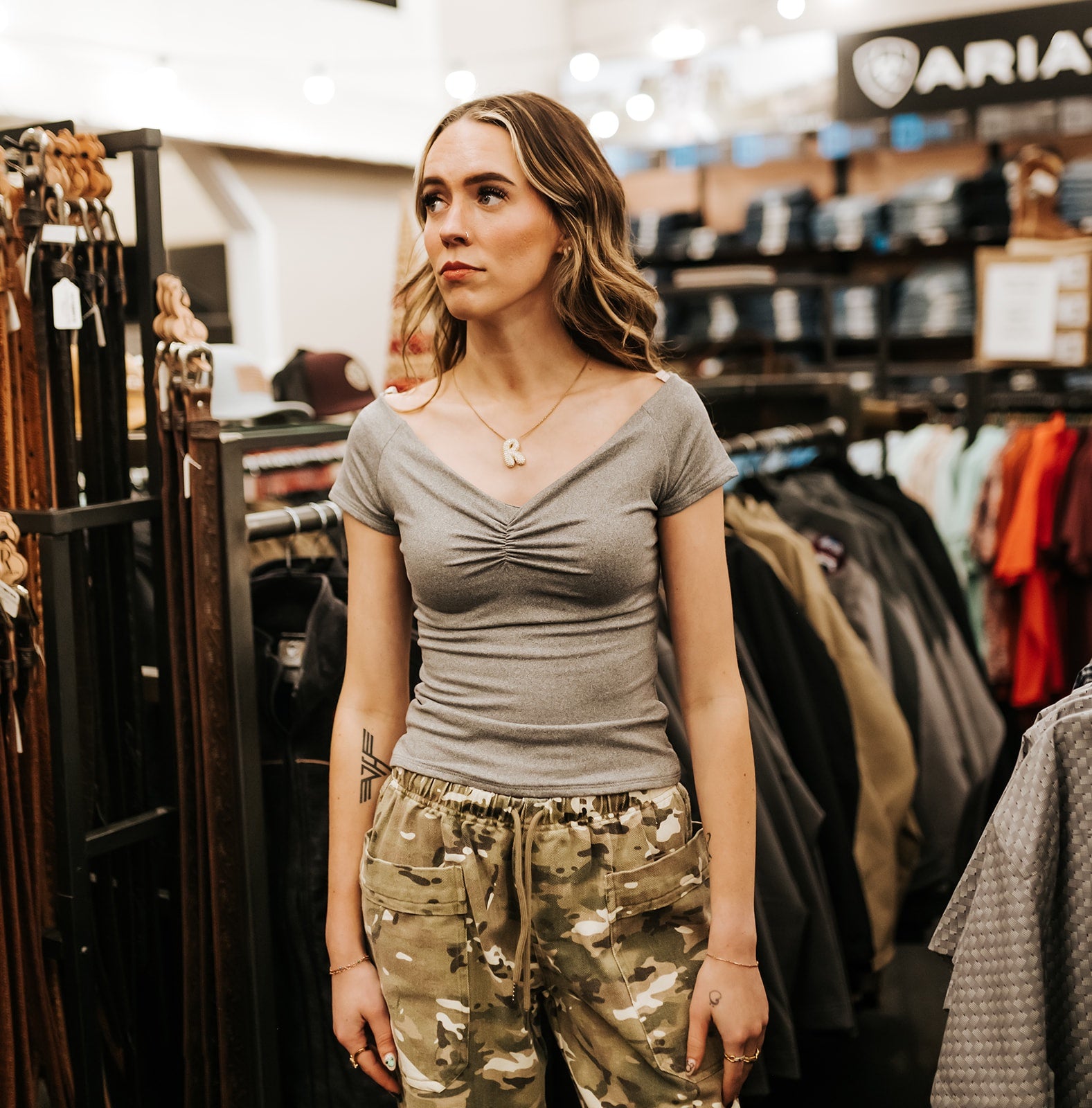 Styling Tip: Tuck it into printed joggers or denim shorts and add sneakers for a laid-back, positive look that goes wherever your day takes you.