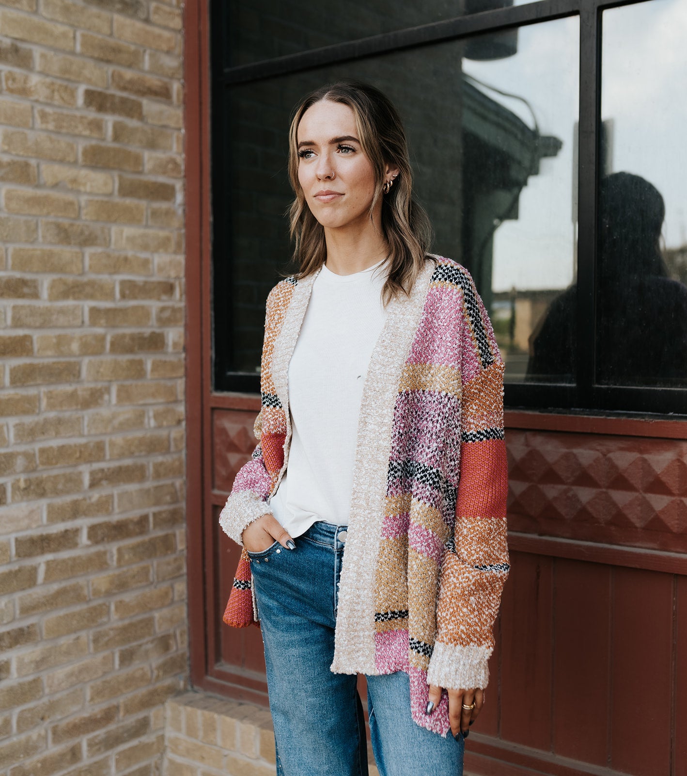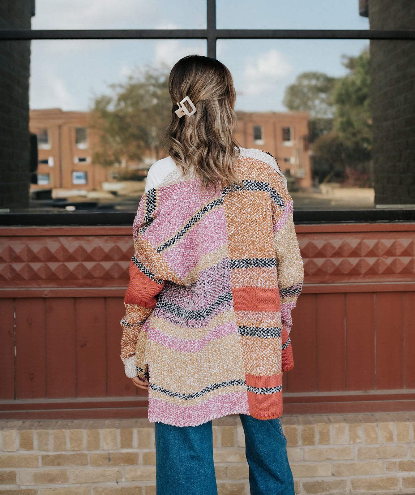 Fuchsia Mustard Multi Oversized Color Block Cardigan